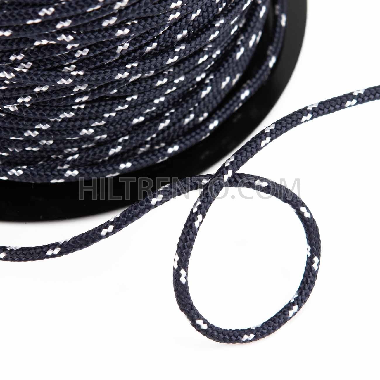 Cuerda trenzada poliéster 3 mm, fantasía Marino oscuro - blanco, cordón para pulseras, manualidades, exterior - 100 metros