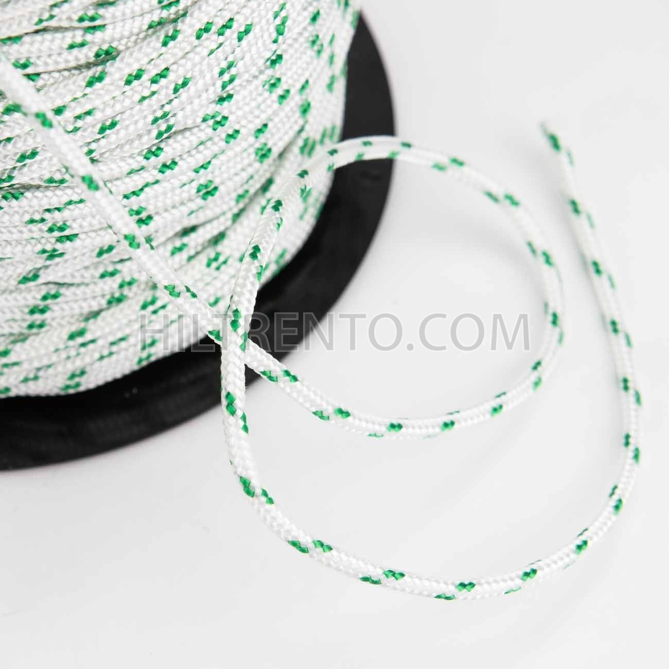 Cuerda trenzada poliéster 3 mm, fantasía blanco-verde, cordón para pulseras, manualidades, exterior - 100 metros