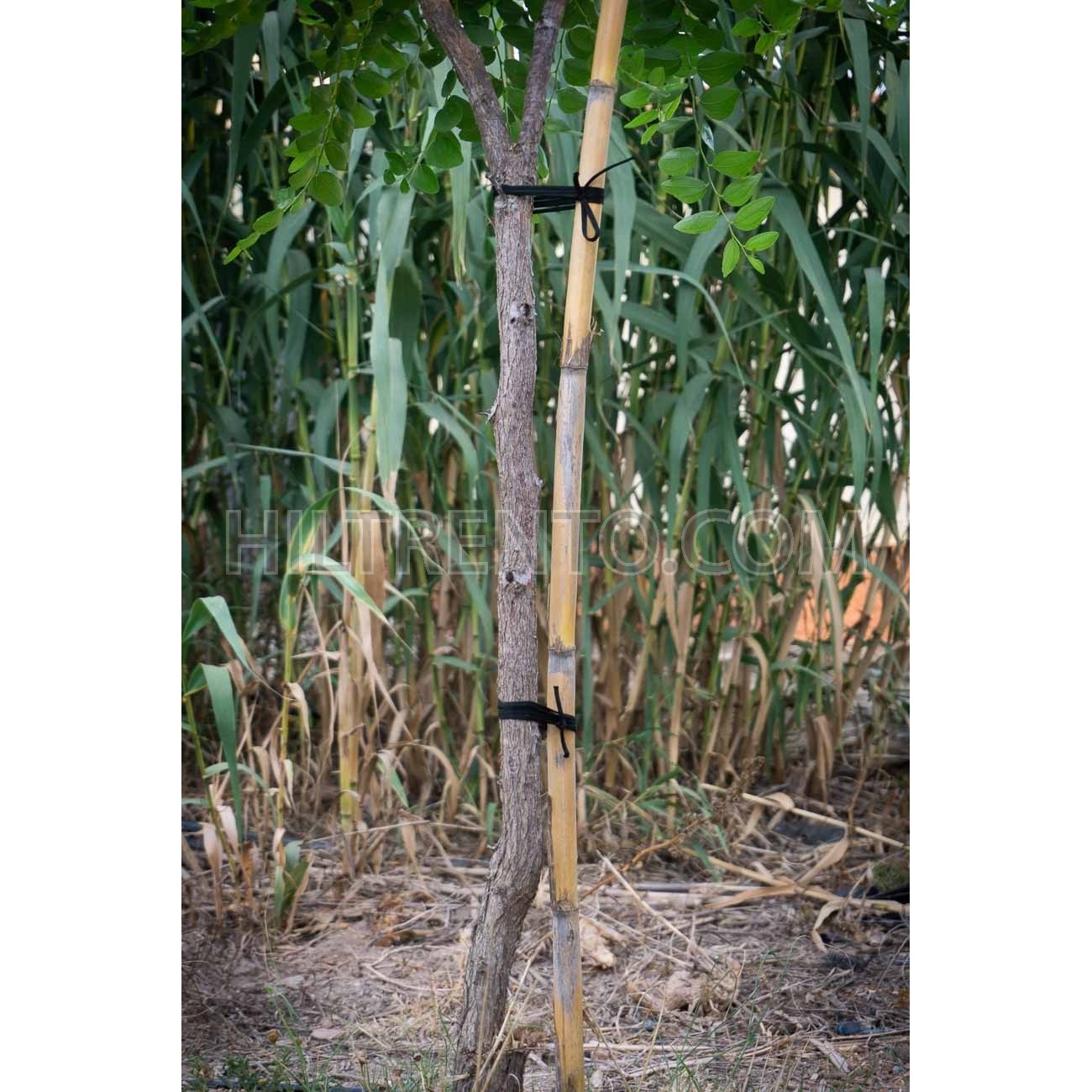 Goma elástica plana de tacto suave, cinta para entutorar y guiar árboles y plantas para un correcto crecimiento. Superficie plana y elástica que no daña el tallo de la planta, permitiendo la holgura correcta para un movimiento controlado. Una vez que la planta crece, no es estrangulada por la goma, debido a su elasticidad y suavidad.