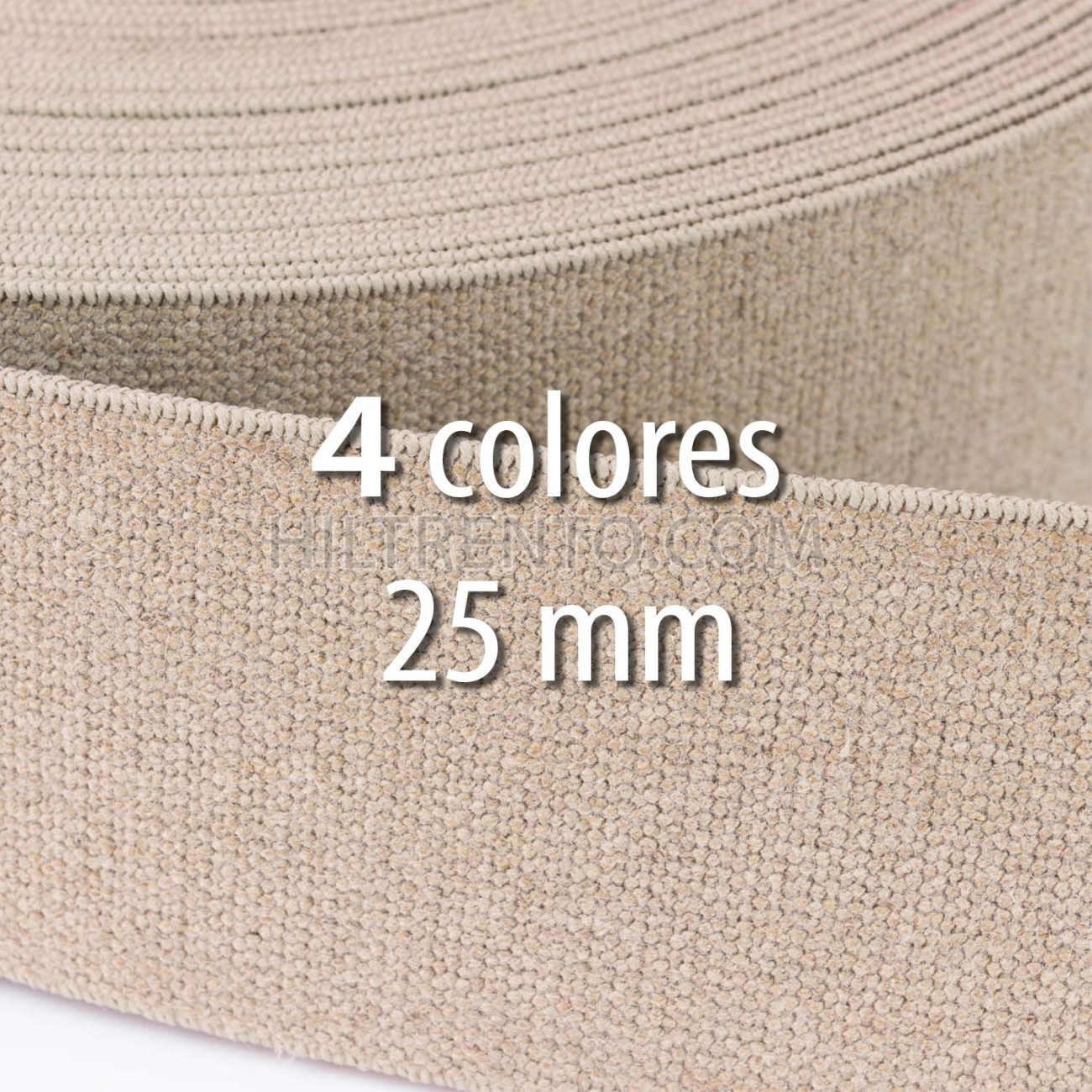 Rollo de elástico fabricado en lino y elastómero. Se trata de un elástico de acabado rústico y elegante. El lino es una fibra natural muy resistente al desgaste y el roce.