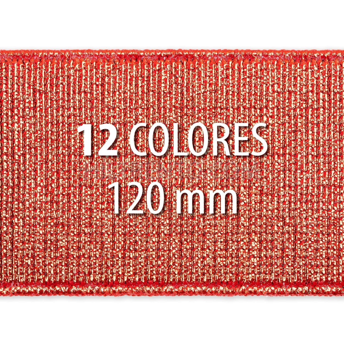 Rollo de cinta elástica metalizada laminada. Textura llamativa y brillante.