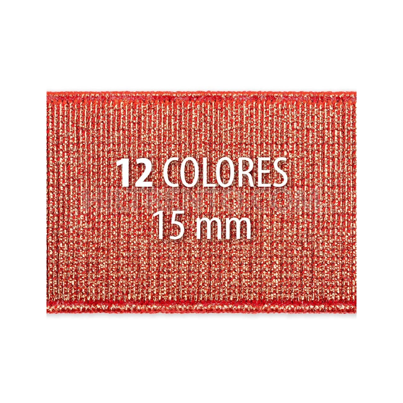Rollo de cinta elástica metalizada laminada. Textura llamativa y brillante.