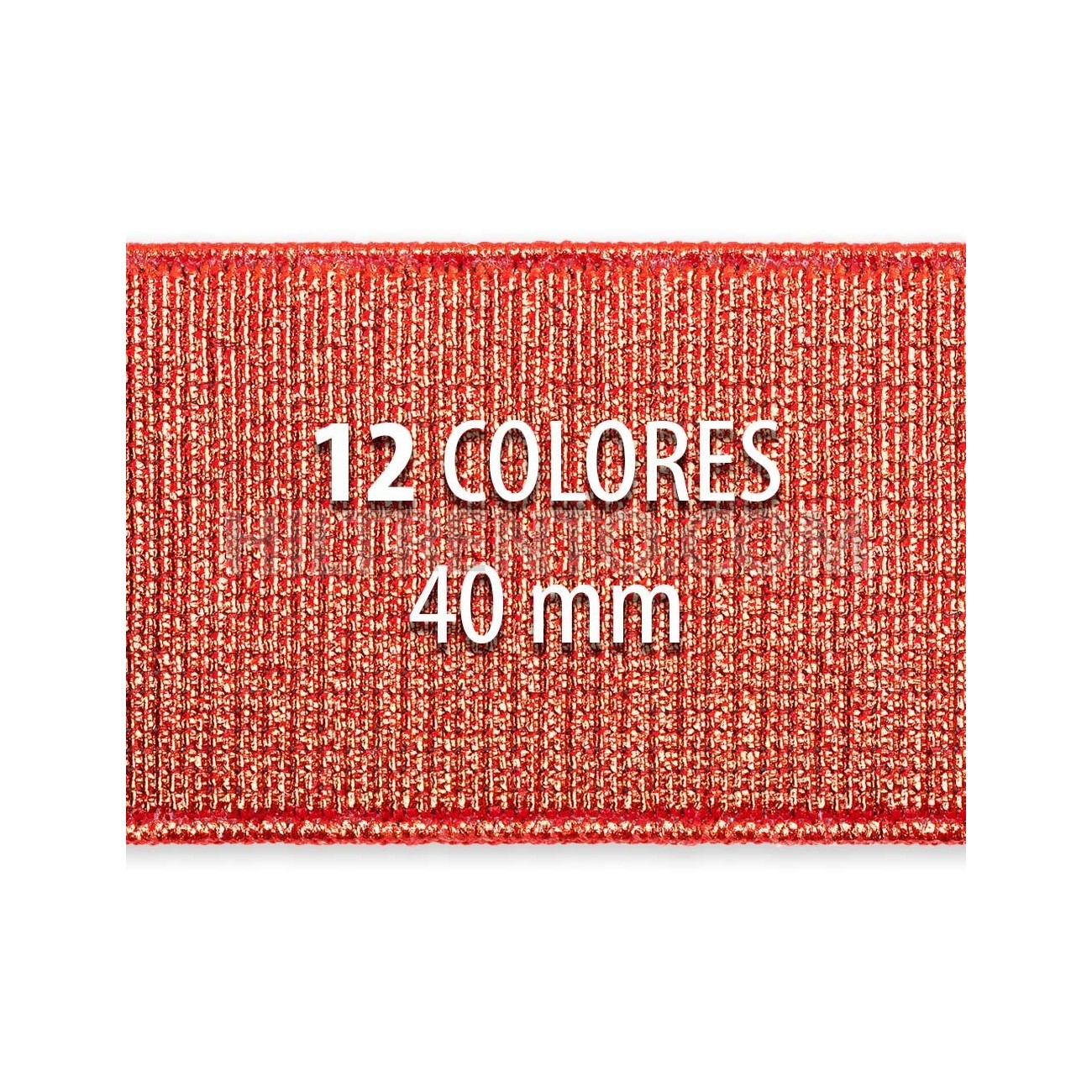 Rollo de cinta elástica metalizada laminada. Textura llamativa y brillante.