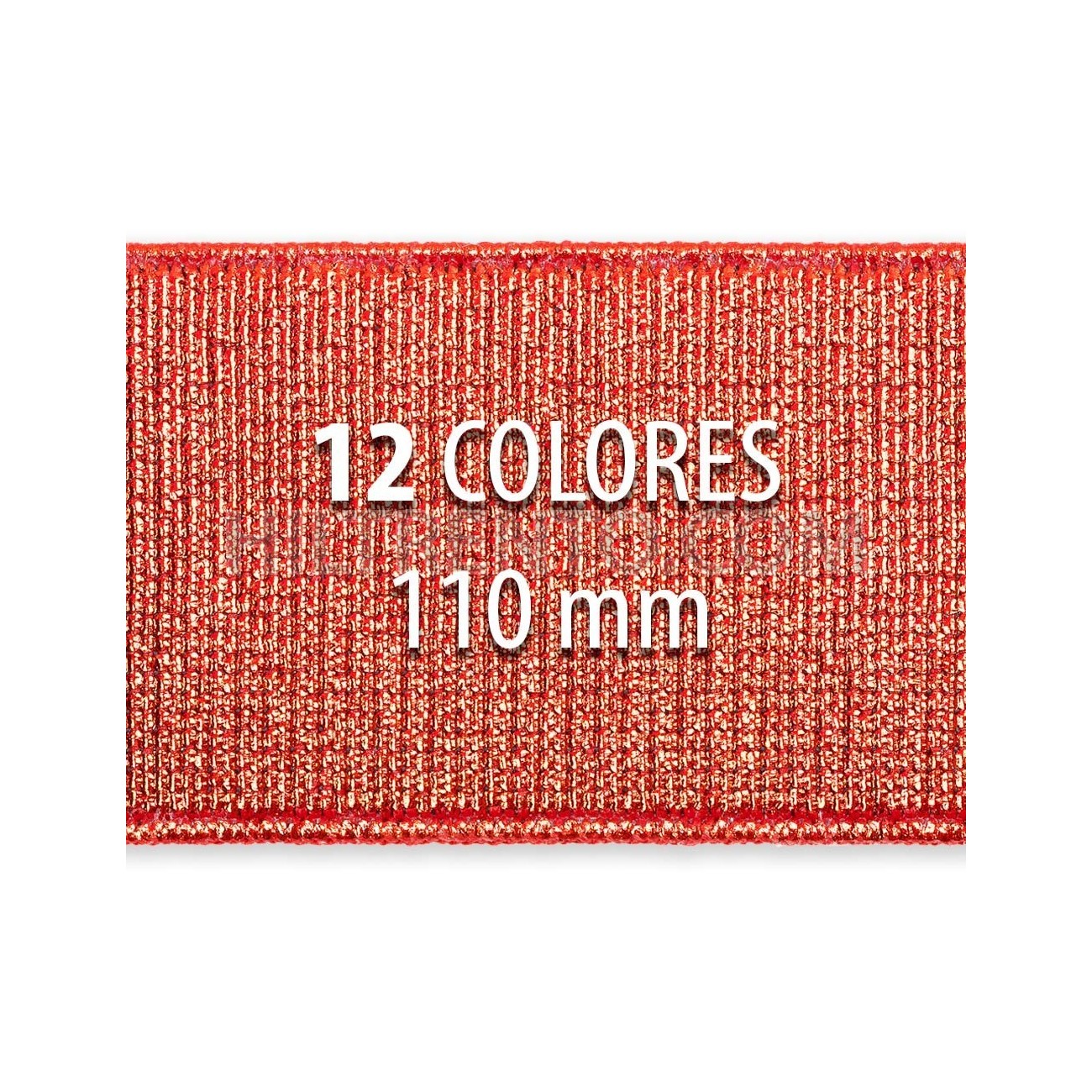 Rollo de cinta elástica metalizada laminada. Textura llamativa y brillante.