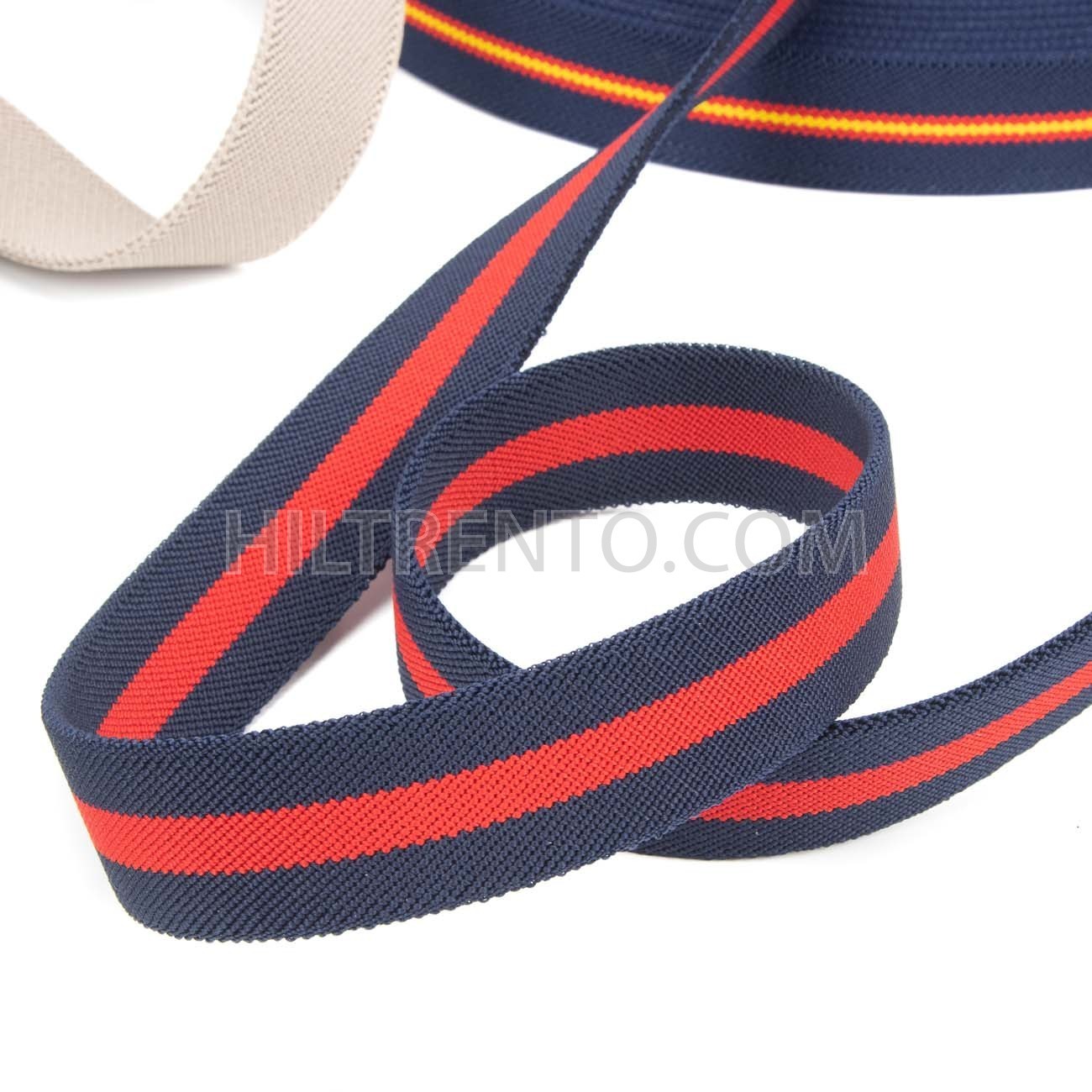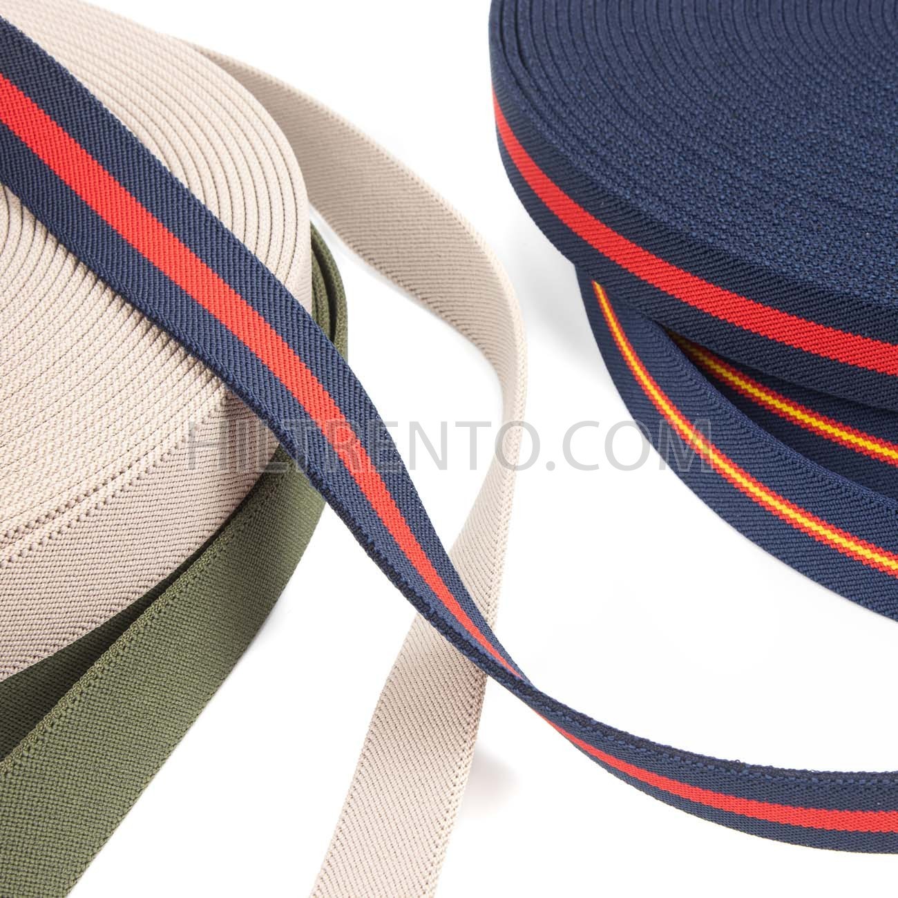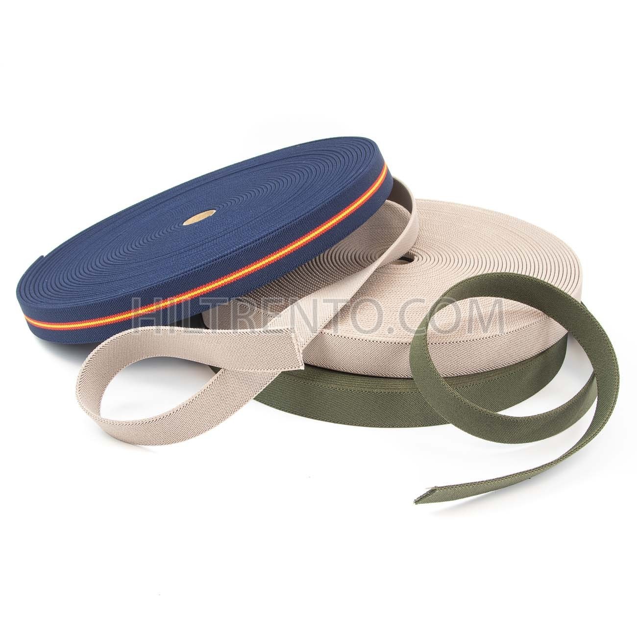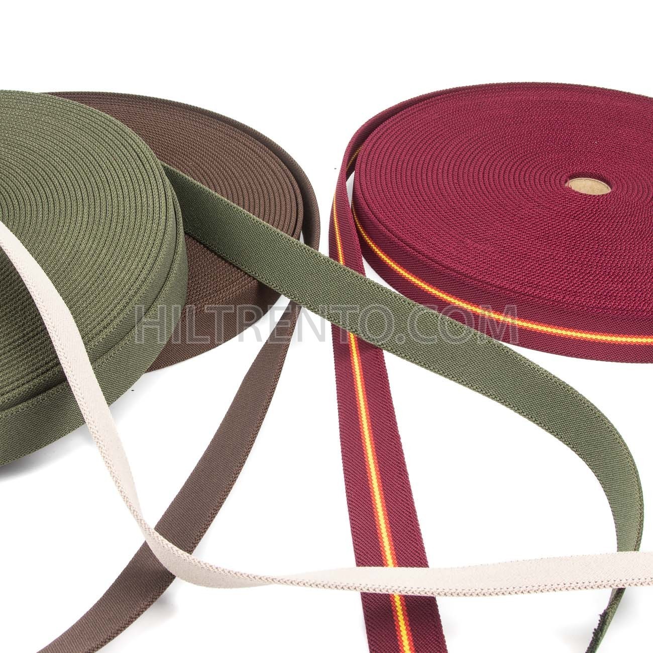 Goma elástica para fabricar cinturones. Esta cinta tiene un espesor consiste y buena rigidez. Se utiliza para fabricar cinturones elásticos, a los que normalmente se le suele incorporar un pequeño trozo de piel al principio y al final, en la parte de la hebilla.