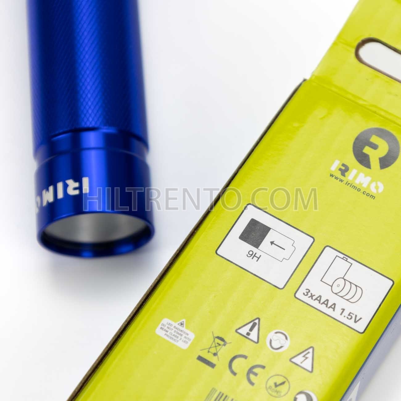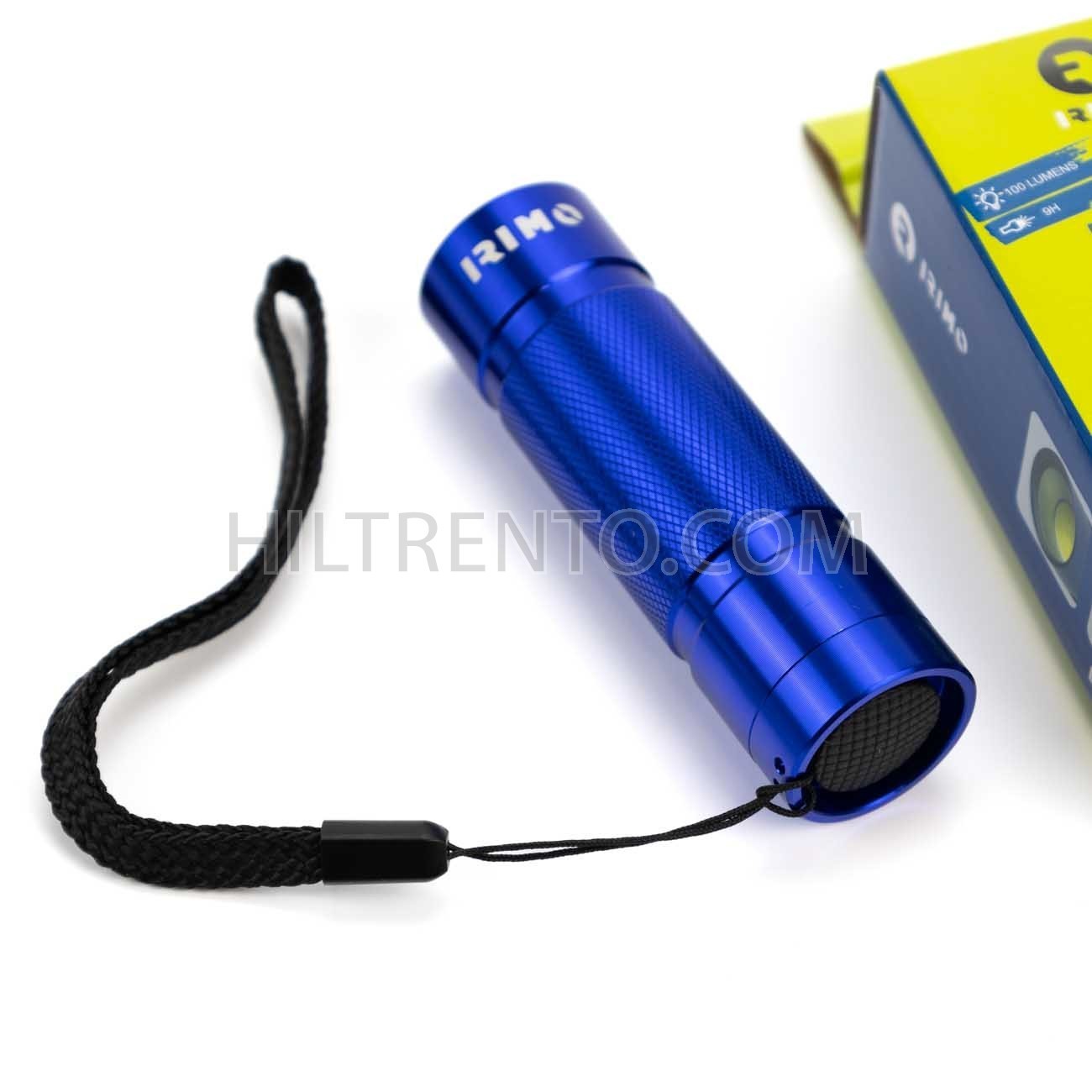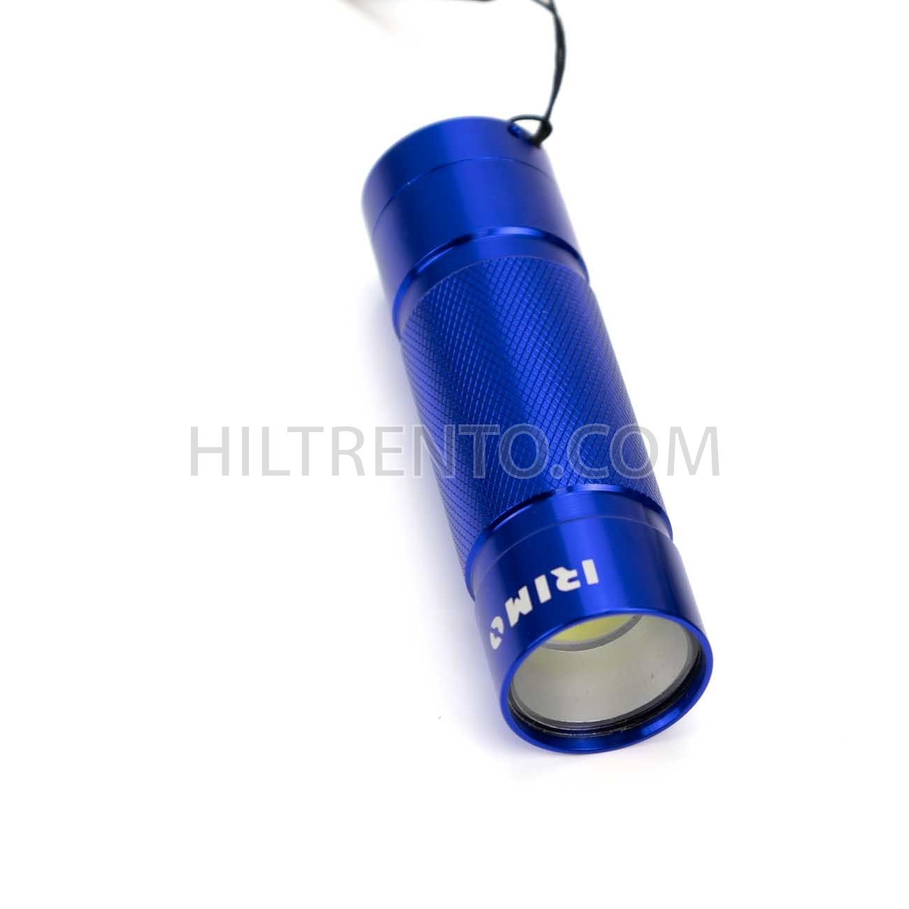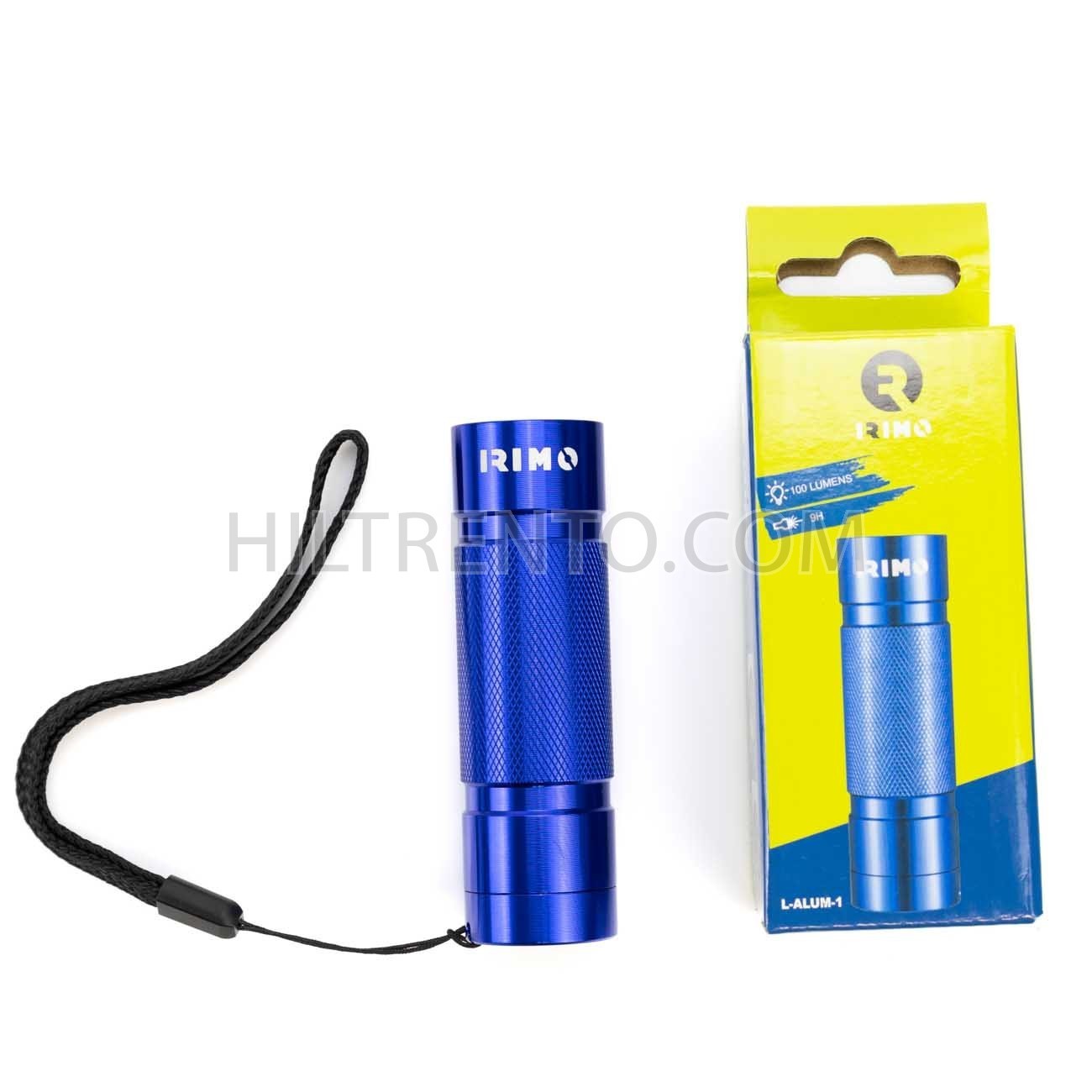 Cómoda linterna de mano fabricada íntegramente en aluminio de color azul, duradera y resistente, larga duración de las pilas.