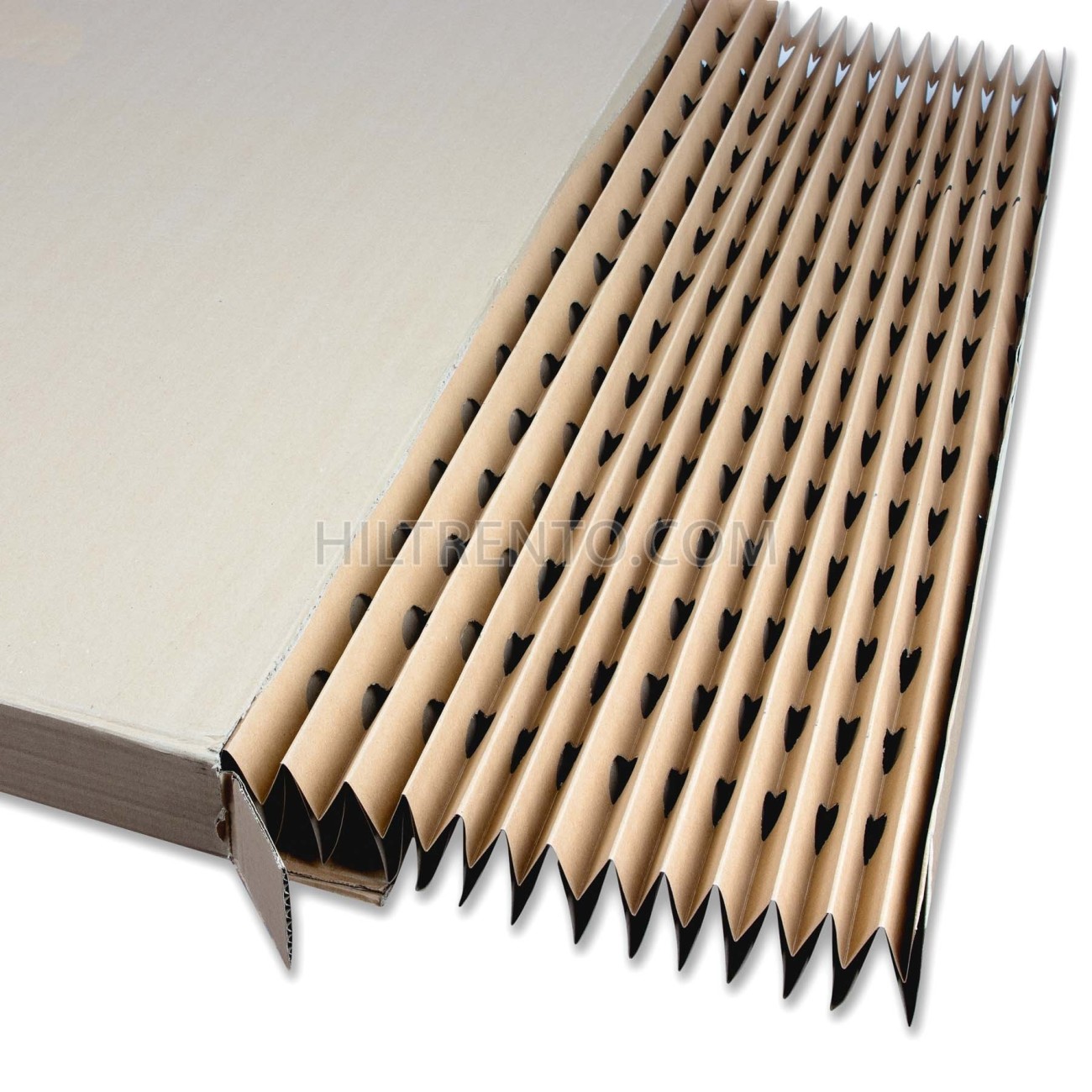 Filtro plegado de cartón kraft para cabinas de pintura y difuminado. Plegado en forma de acordeón y perforado. Compatible con todas las marcas de cabina. Este filtro absorbe y recoge las partículas de pintura en suspensión.