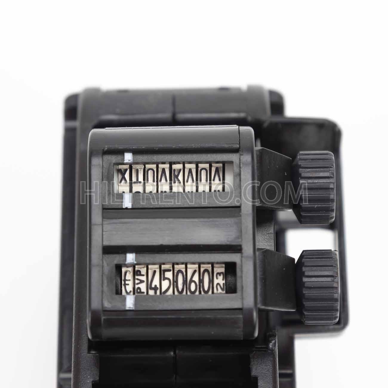 Se trata de una etiquetadora muy completa, Con números y letras en su línea superior, y solo números en la línea de abajo. Para etiquetas adhesivas de 26x16 mm. Cuenta con dos ruletas que permite un fácil ajuste en cada una de las dos líneas. Incluye también punto (.) y guion medio (-) en todos los espacios.
