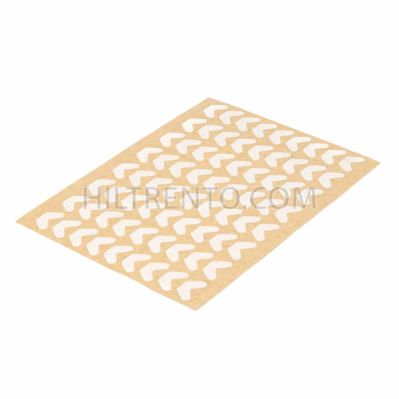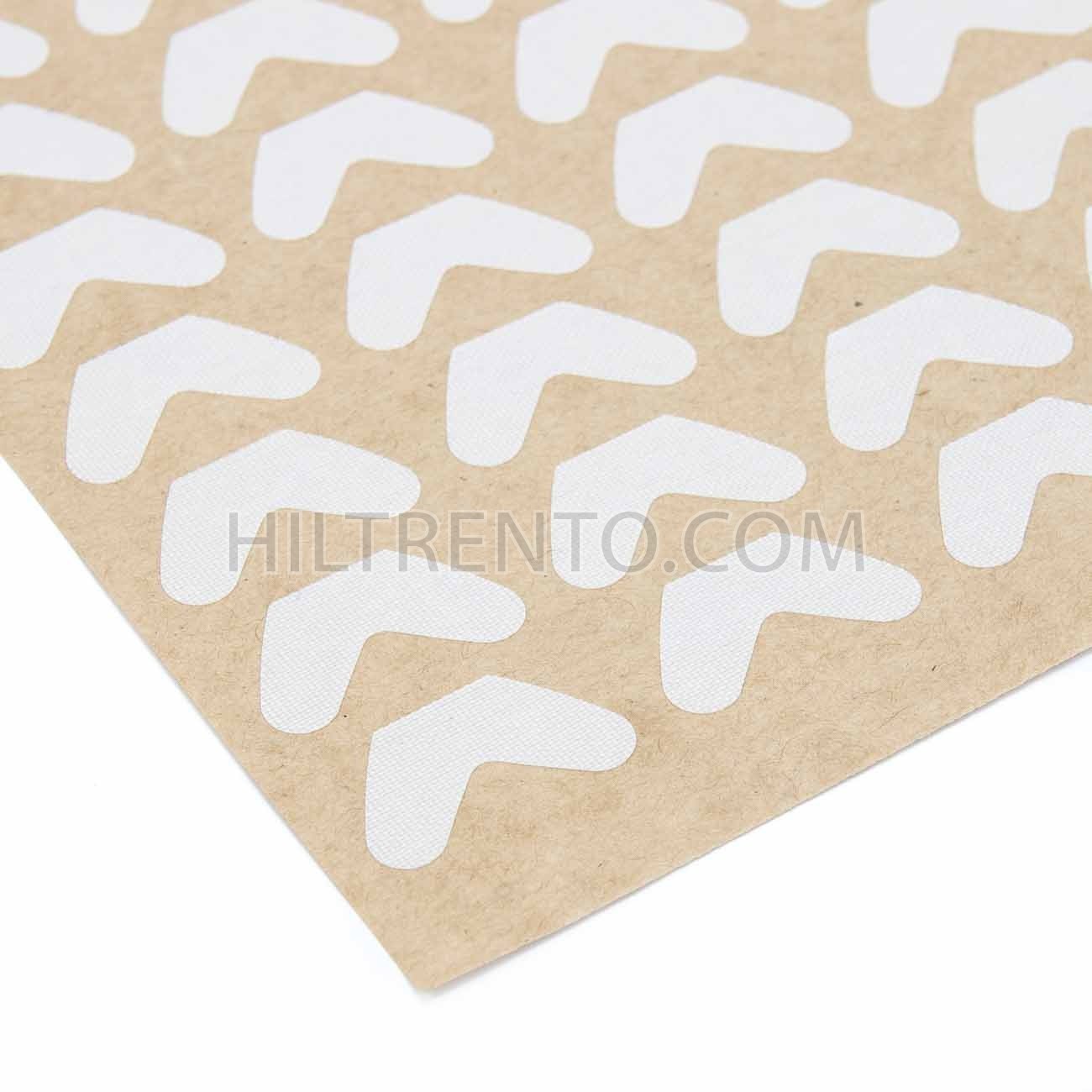 Etiquetas forma boomerang blancas adhesivas nylon refuerzo costuras - Hoja 72 uds