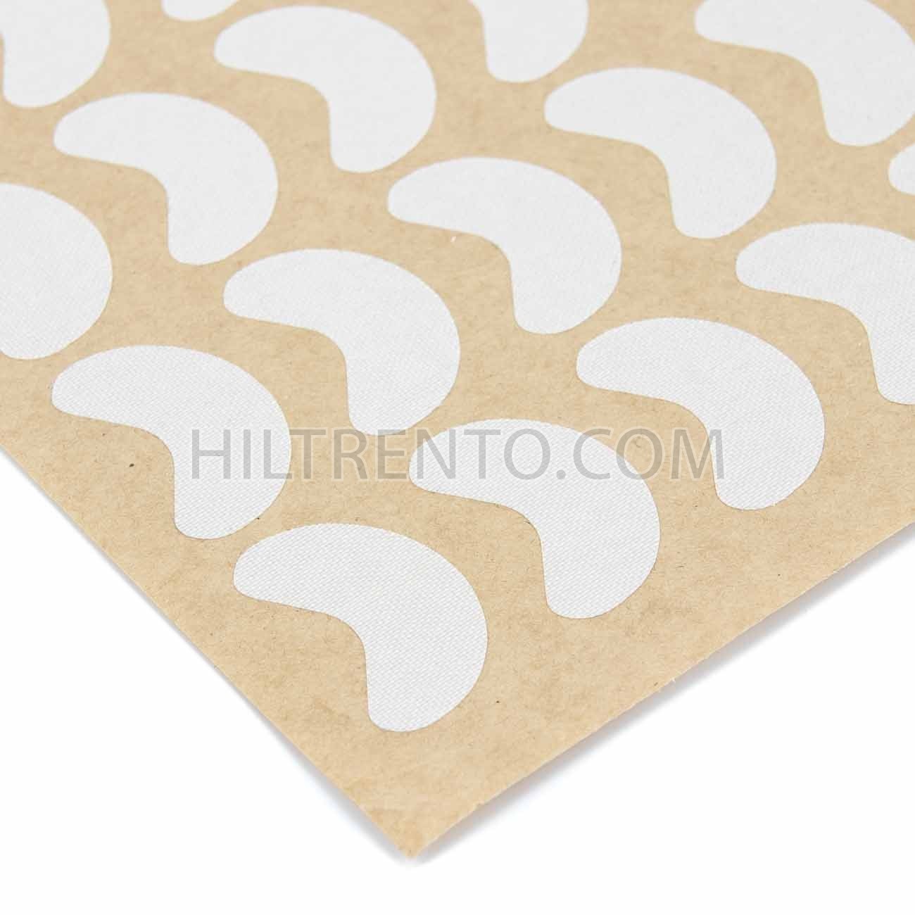 Etiquetas forma media luna blancas adhesivas nylon refuerzo costuras - Hoja 50 uds