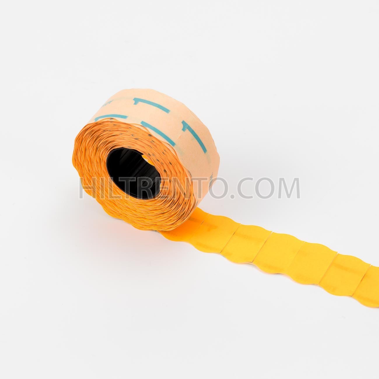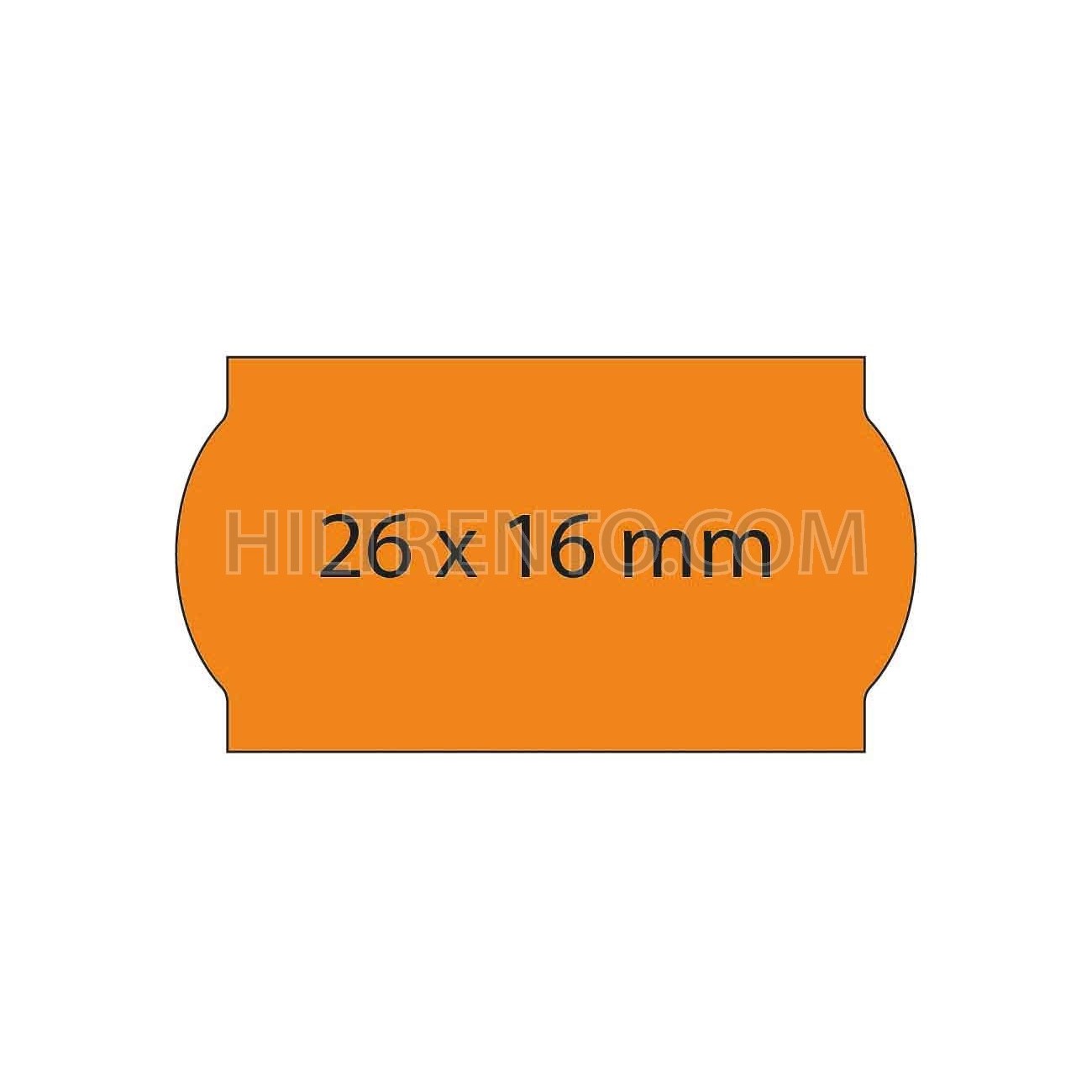 Rollo 1000 etiquetas 26x16 naranja fluor, adhesivo permanente