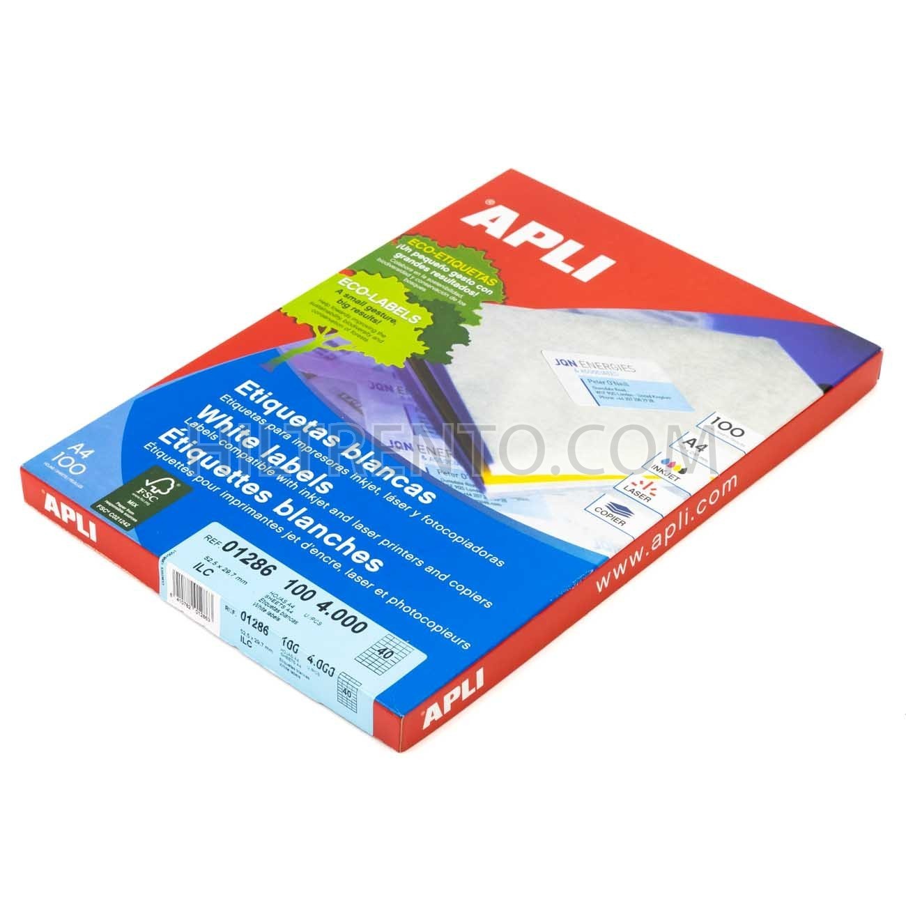 Etiquetas blancas permanentes, ( 40 por hoja) 52,5 x 29,7 mm APLI 01286 - Pack 100 hojas