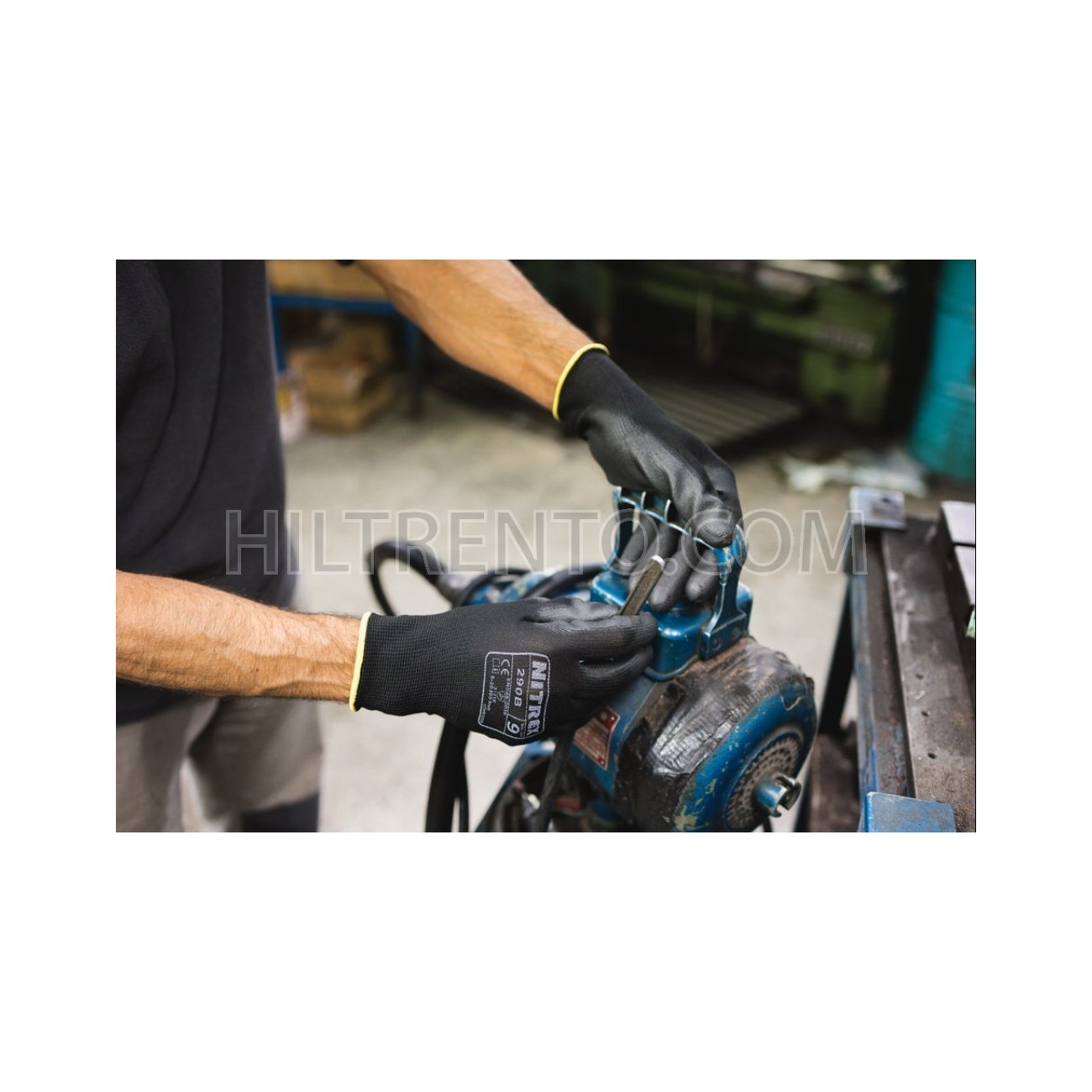 Guantes trabajo negros poliéster + poliuretano Galga 130 nitrex 290B