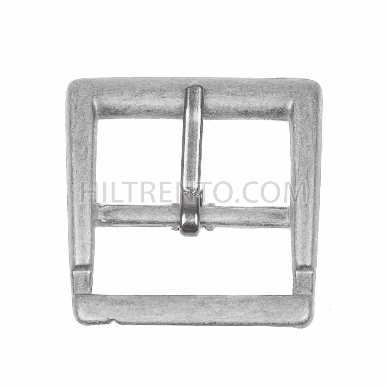 Hebilla de metálica de zamak en color gris mate sin baño, de 25 mm de paso. Pasador niquelado brillante. Para cinturones, bolsos, carteras, bisutería, artículos de piel, etc.