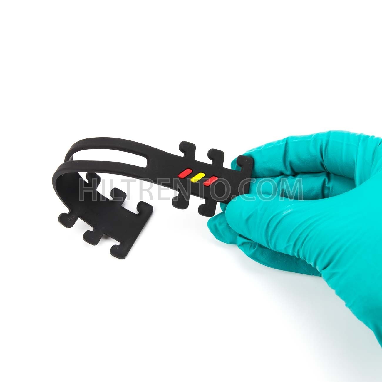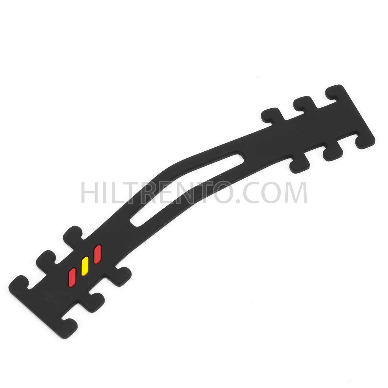 Accesorio para sujetar el cordón elástico de la mascarilla por detrás del cuello, evitando el roce con las orejas y aportando mayor confort. Fabricado en goma blanda de alto confort. Incluye 3 ajustes a cada lado. Incluye la bandera de España en relieve.