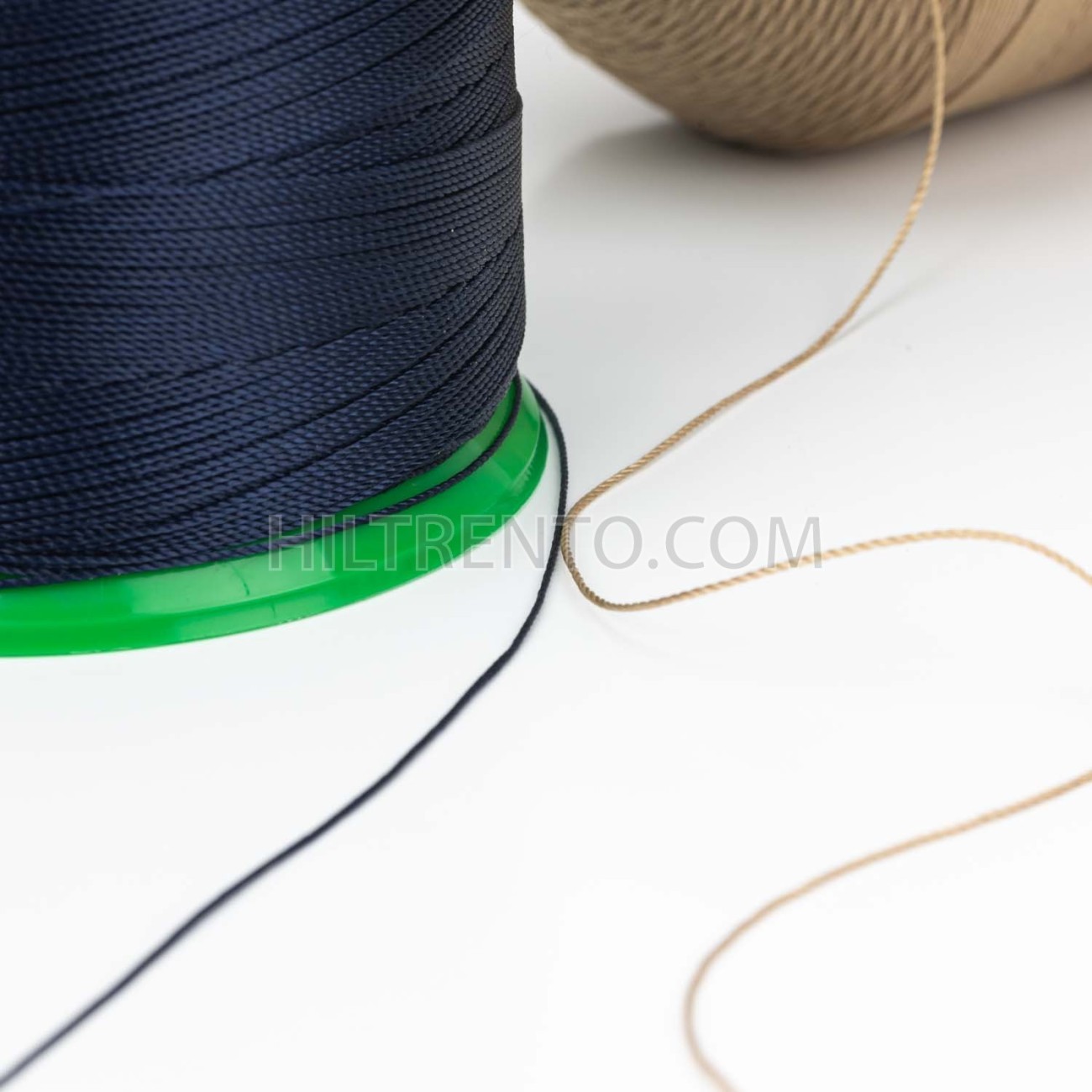 Hilo continuo torcido de alta calidad, 100% poliamida de alta tenacidad (6.6). La poliamida, también llamada nylon, es un polímero de excelentes propiedades mecánicas y gran resistencia a la abrasión y la rotura. Acabados brillantes y limpios, pasa suavemente por la maquina y la aguja sin romperse.