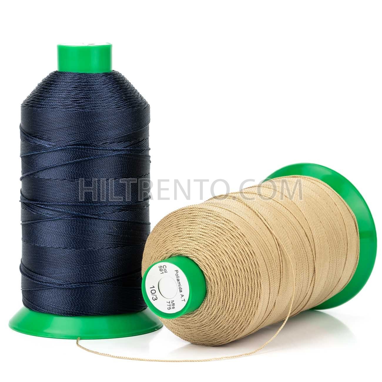 Hilo continuo torcido de alta calidad, 100% poliamida de alta tenacidad (6.6). La poliamida, también llamada nylon, es un polímero de excelentes propiedades mecánicas y gran resistencia a la abrasión y la rotura. Acabados brillantes y limpios, pasa suavemente por la maquina y la aguja sin romperse.