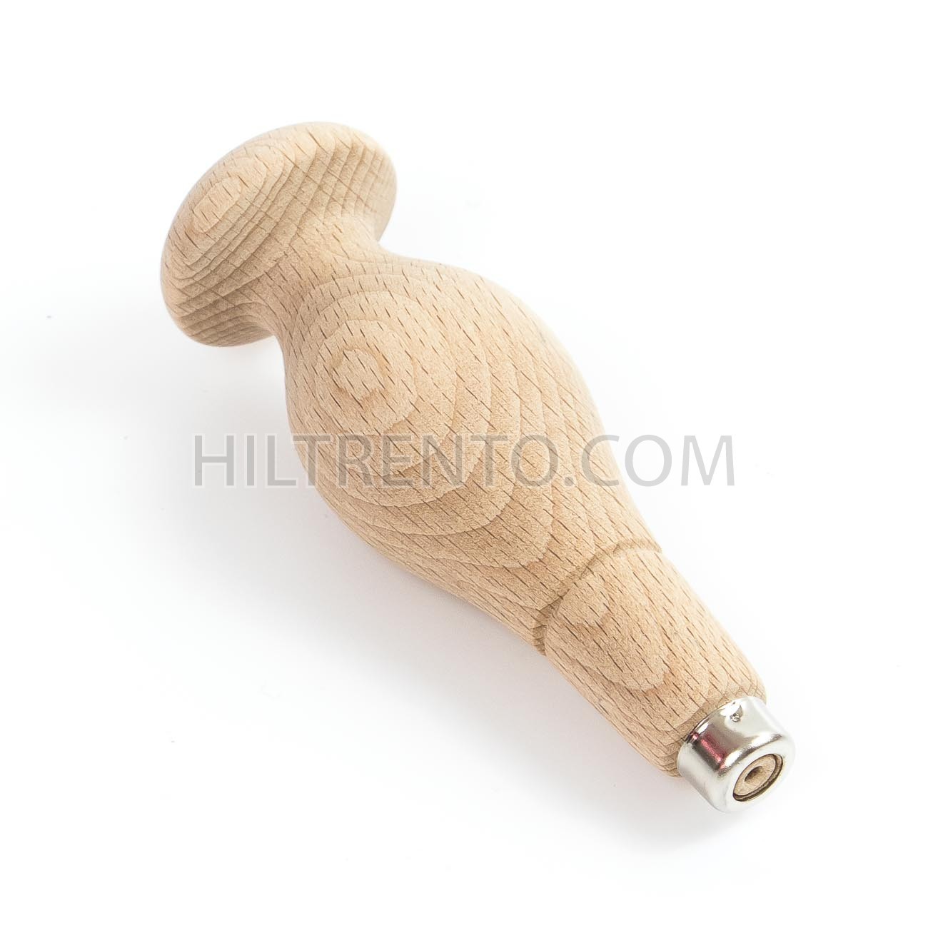 Mango de zapatero de madera. Se utiliza con leznas pequeñas, Sirve para cualquier lezna. Forma redondeada. Fabricado en España.