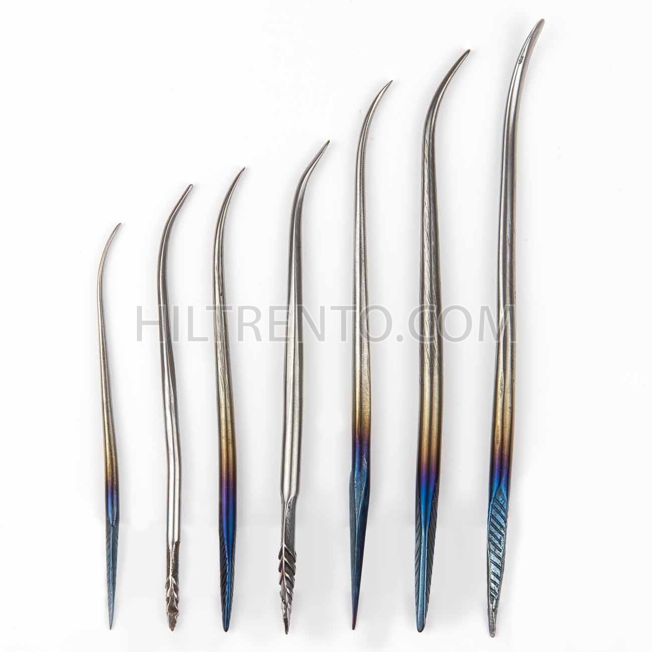 Leznas manuales para coser cuero a mano. Tipo aguja, punta fina curvada para agarrar el hilo con facilidad. Mango incluido y montado en la lezna, fabricadas en España.