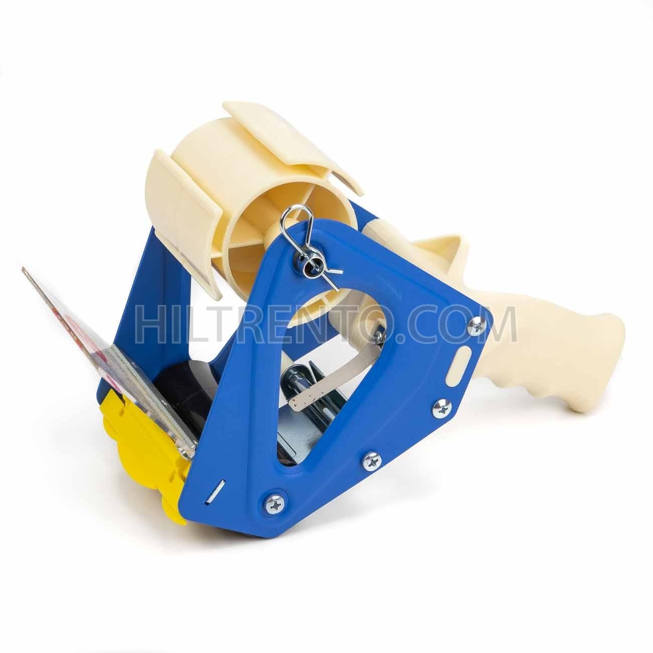 Máquina de precintar especial, apta para rollos de 100 mm de anchura. Cuerpo metálico y mango de plástico con gran ergonomía y resistencia.