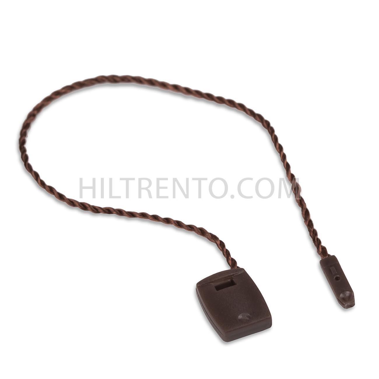 Navet de cordón, también llamado marchamo, para colocar etiquetas a ropa y calzado o atar grupos de artículos manualmente. Pieza plástica de cierre por presión y punta anti retorno. Cuerda de nylon muy resistente.