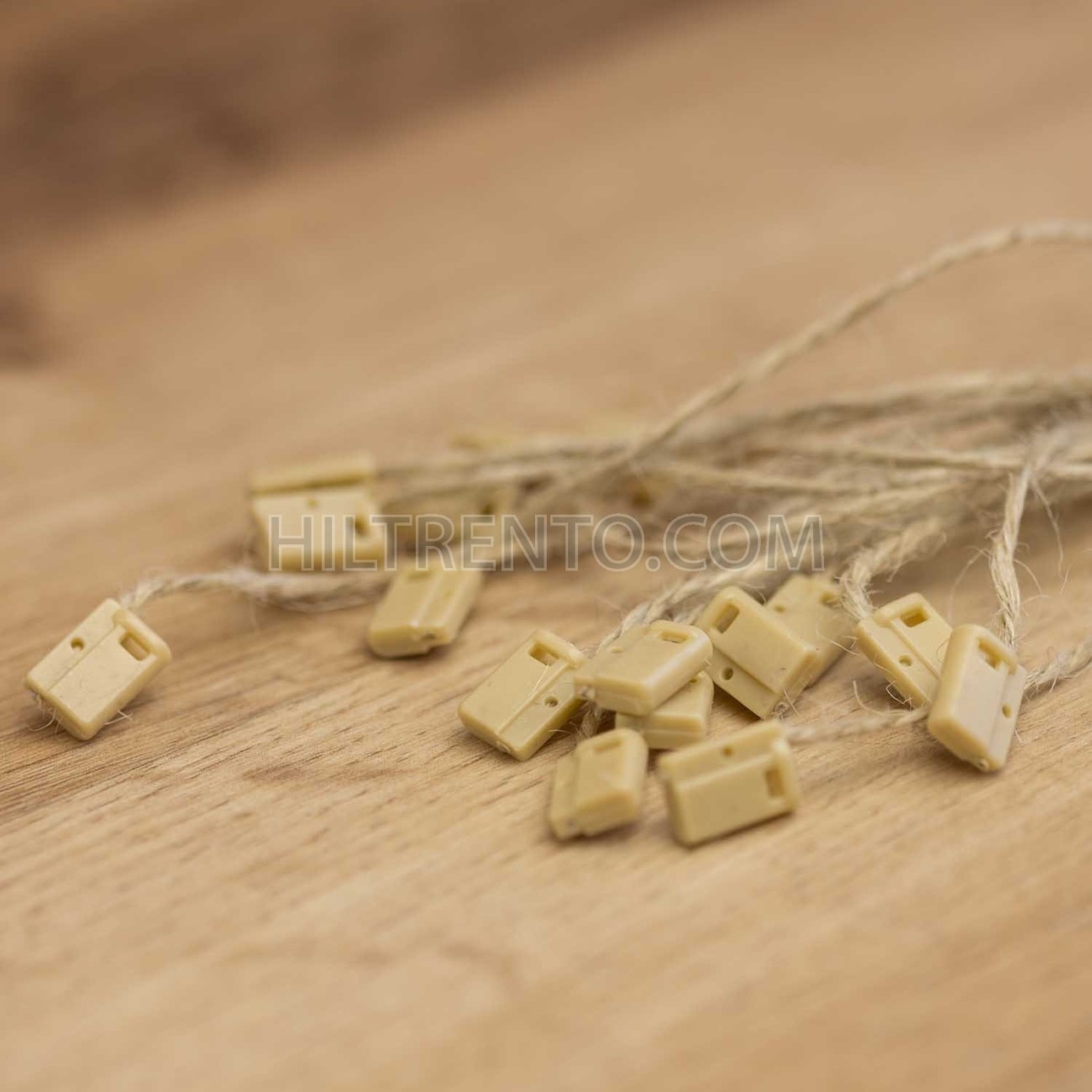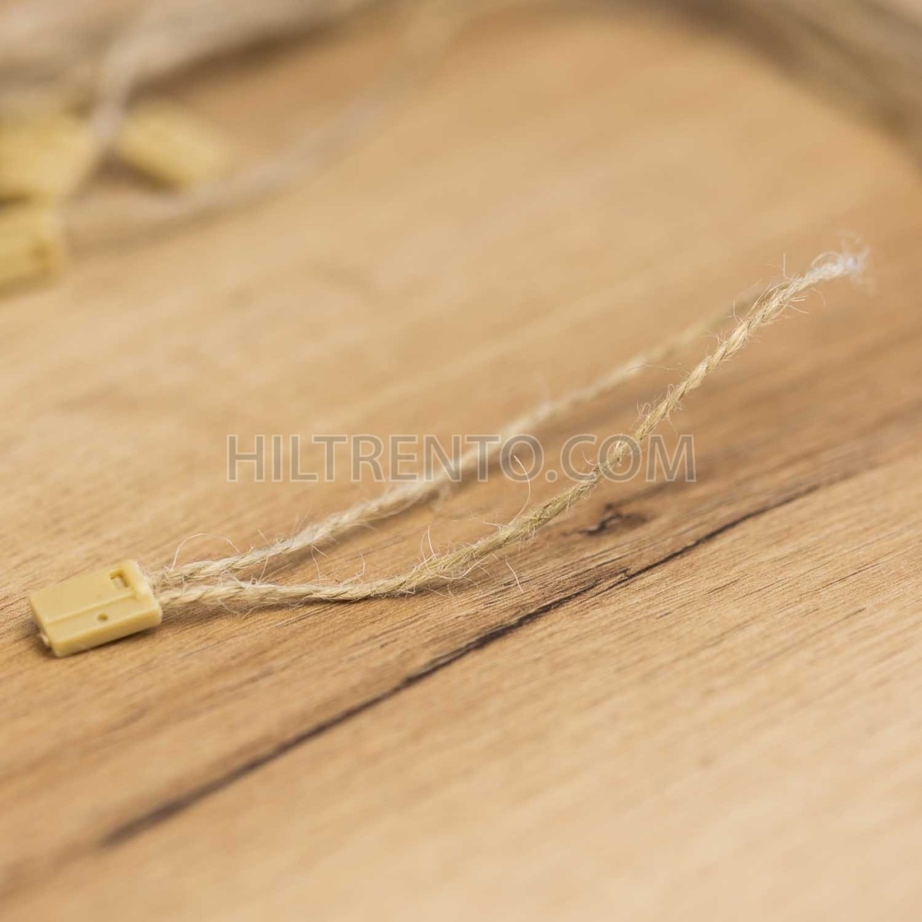Navete para poner etiqueta a prendas y calzado. Cuerda de yute que aporta un acabado bonito a las etiquetas de calzado y textil, envoltorios, manualidades kraft, etc. Una vez cerrado es no se puede abrir.