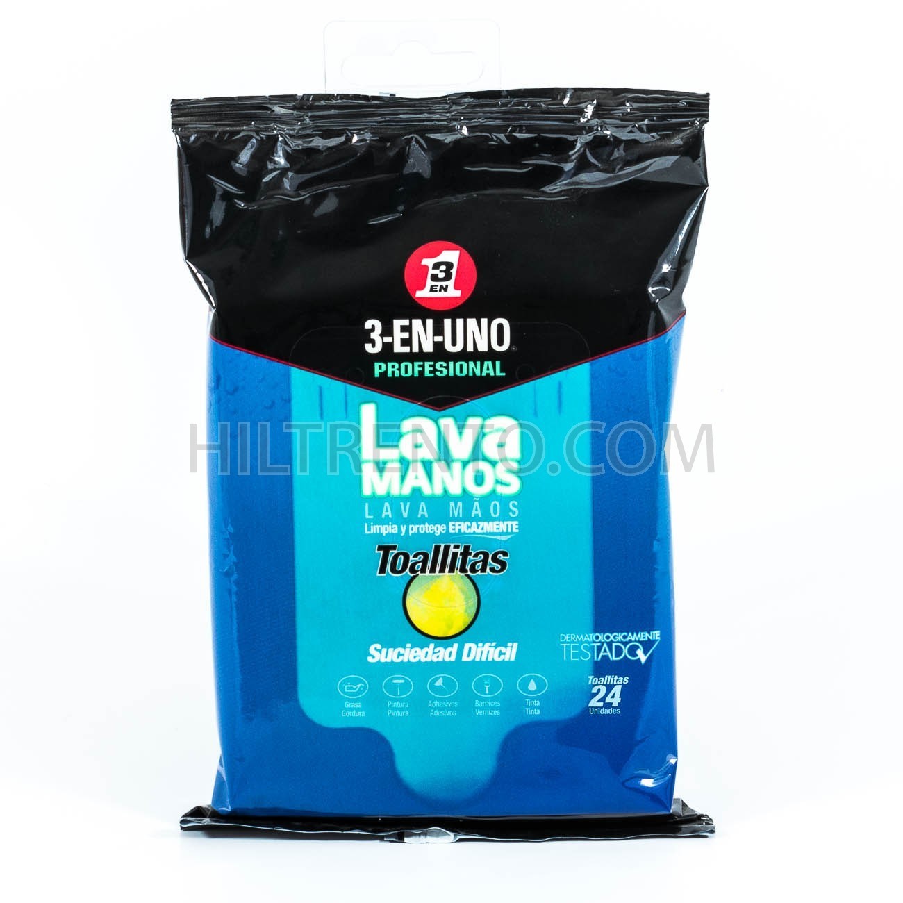 Toallitas para las manos de gran capacidad limpiadora que eliminan restos de grasa, pintura y barnices, tinta, adhesivos, cola y suciedad dificil en general.