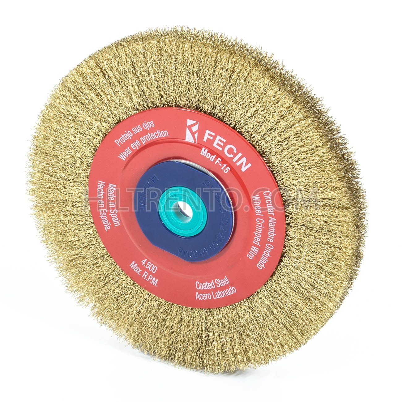 Carda circular para máquinas de cardar en el calzado. El acero latonado ondulado aporta un acabado suave al zapato.