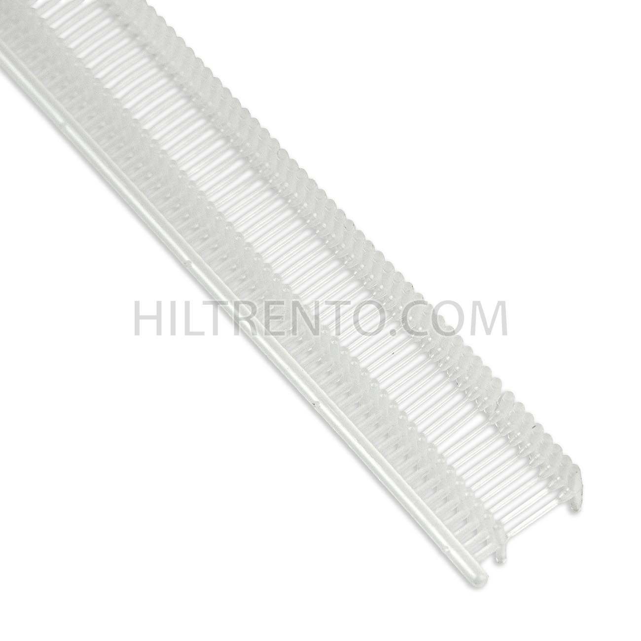 Sus extremos acaban en forma de T para bloquear la etiqueta y evitar que se salgan de la prenda. Coloque el peine de navetes en la pistola de etiquetar, presiona el gatillo, y el navete pasará a través de la aguja, y a su vez, de la etiqueta y la prenda, para dejar un extremo a cada lado.