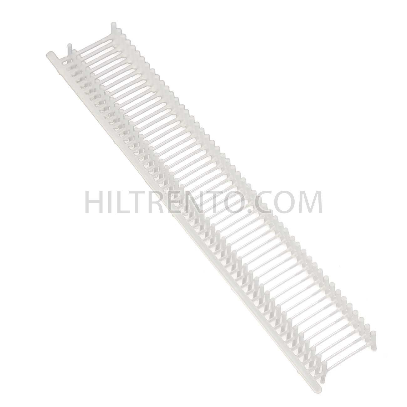 Sus extremos acaban en forma de T para bloquear la etiqueta y evitar que se salgan de la prenda. Coloque el peine de navetes en la pistola de etiquetar, presiona el gatillo, y el navete pasará a través de la aguja, y a su vez, de la etiqueta y la prenda, para dejar un extremo a cada lado.