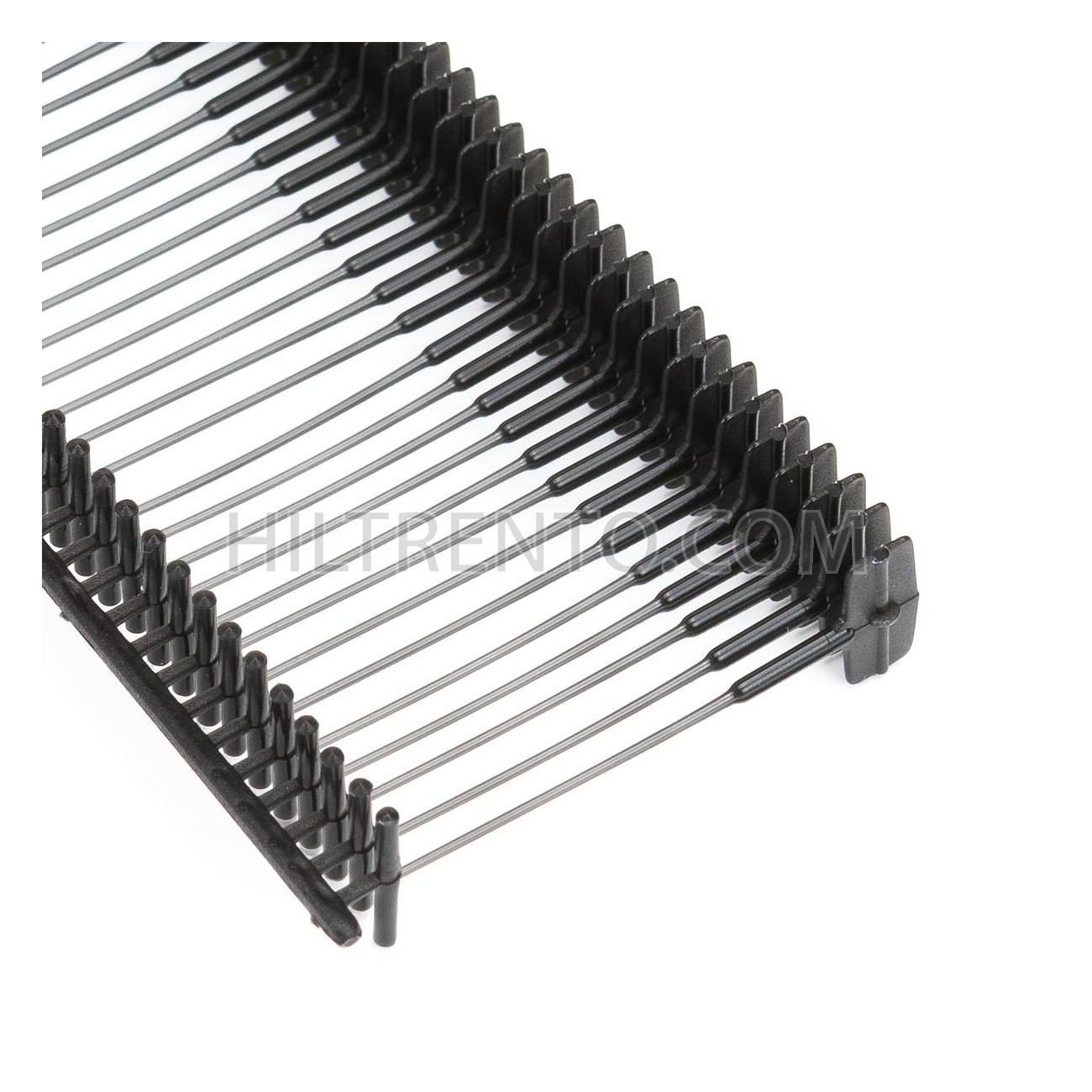 Navete estándar negro, de hilo plástico, para la fijación de etiquetas colgantes en ropa, calzado y todo tipo de productos en general. Se colocan con pistola etiquetadora de navetes estándar.