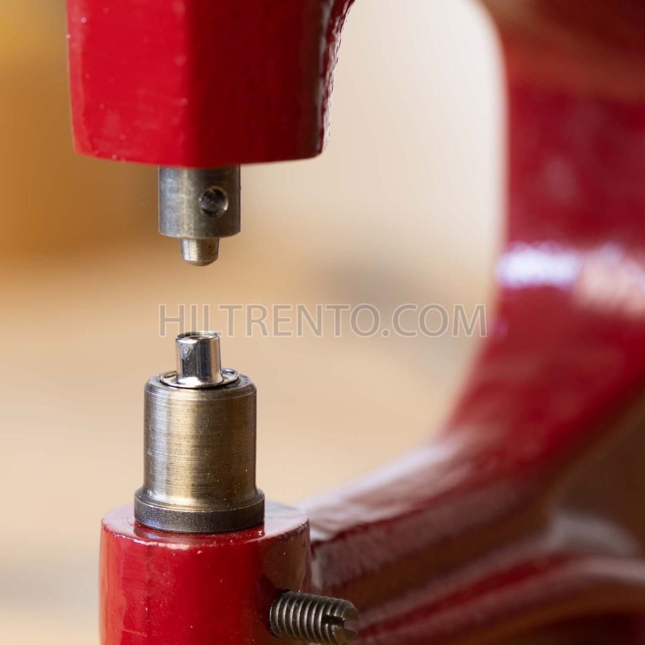 Ojetes metálicos para colocar mediante troquel en máquinas de poner fornituras. También llamados ojales o ojalillos. Compuesto de una sola pieza que se dobla de forma redonda al presionar el troquel, formando un aro que se fija con firmeza al material por ambos extremos. Sin estrías, no se parte al doblar.