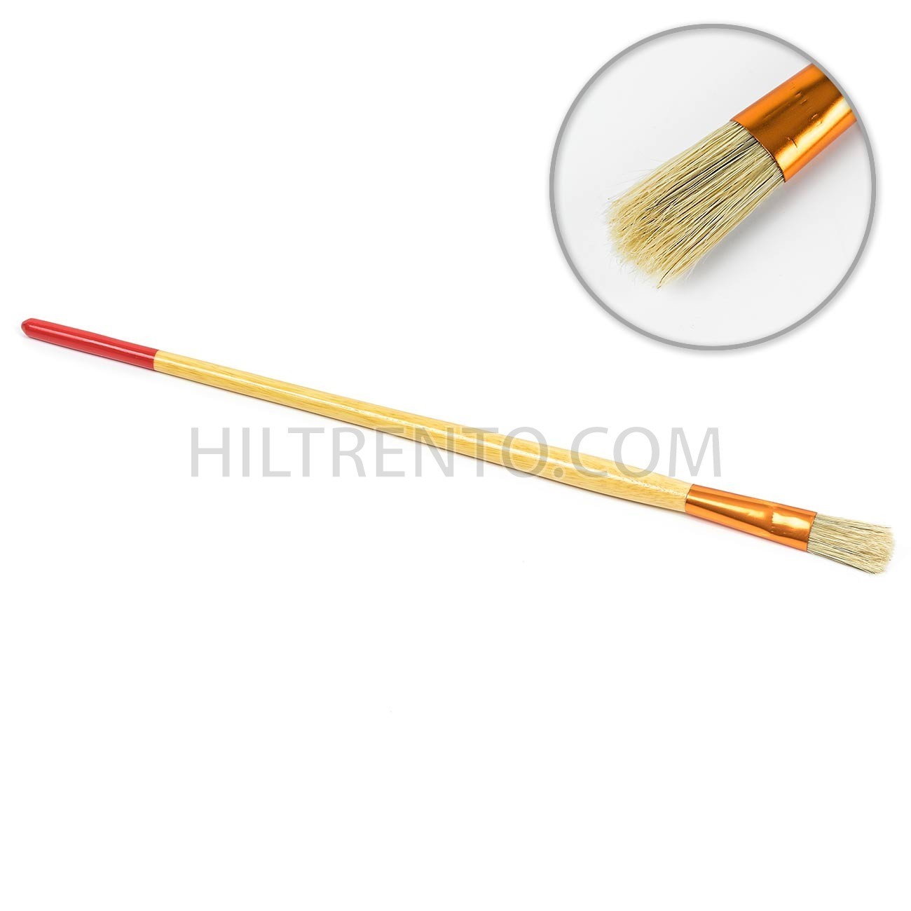 Pincel plano con virola roja anodizada de cobre. Mango de madera barnizado. Cerda resistente y elástica chunking 90%.