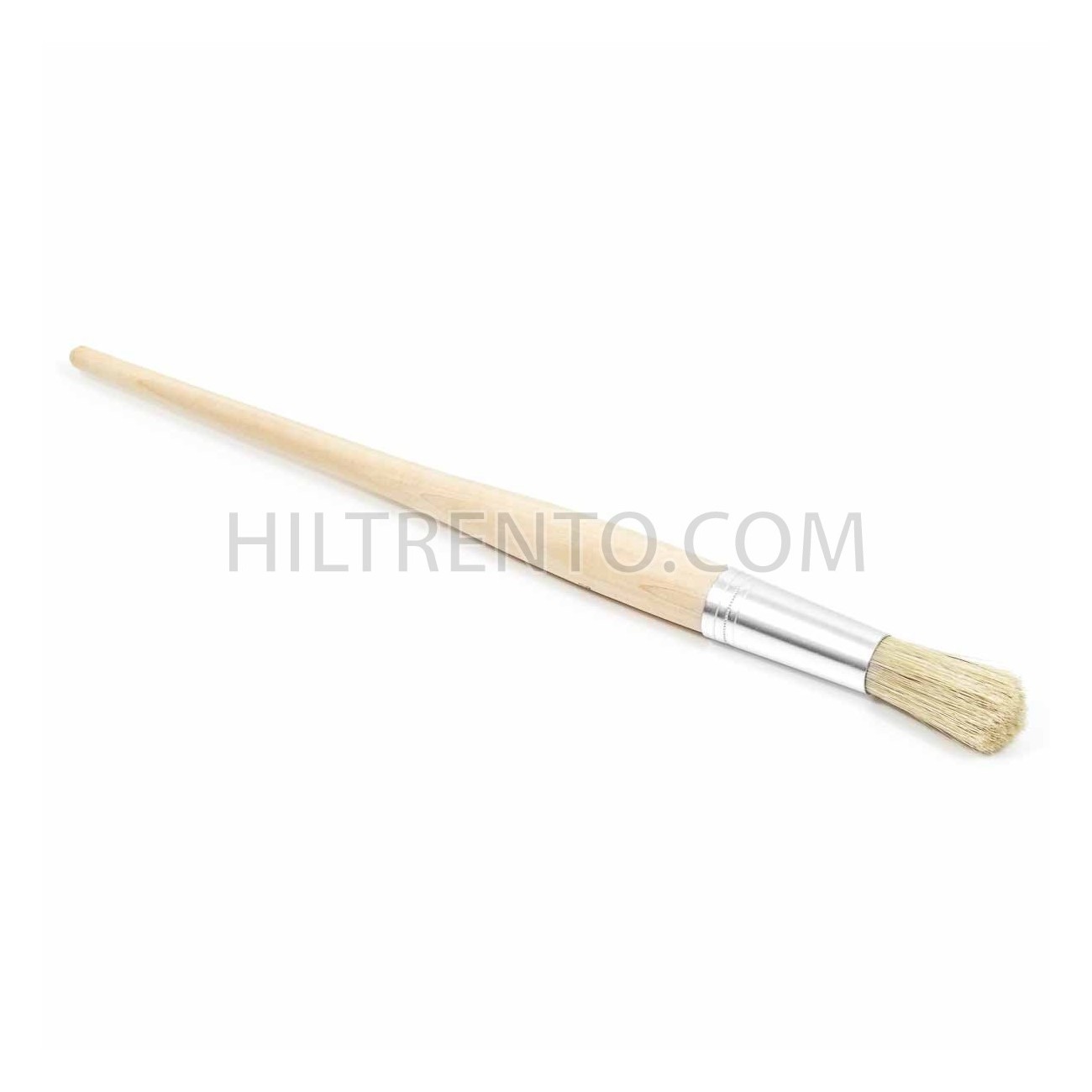 Pincel redondo con mango de madera, virola de hojalata y cerda natural. Puede variar el color de la virola entre verde y cobre.