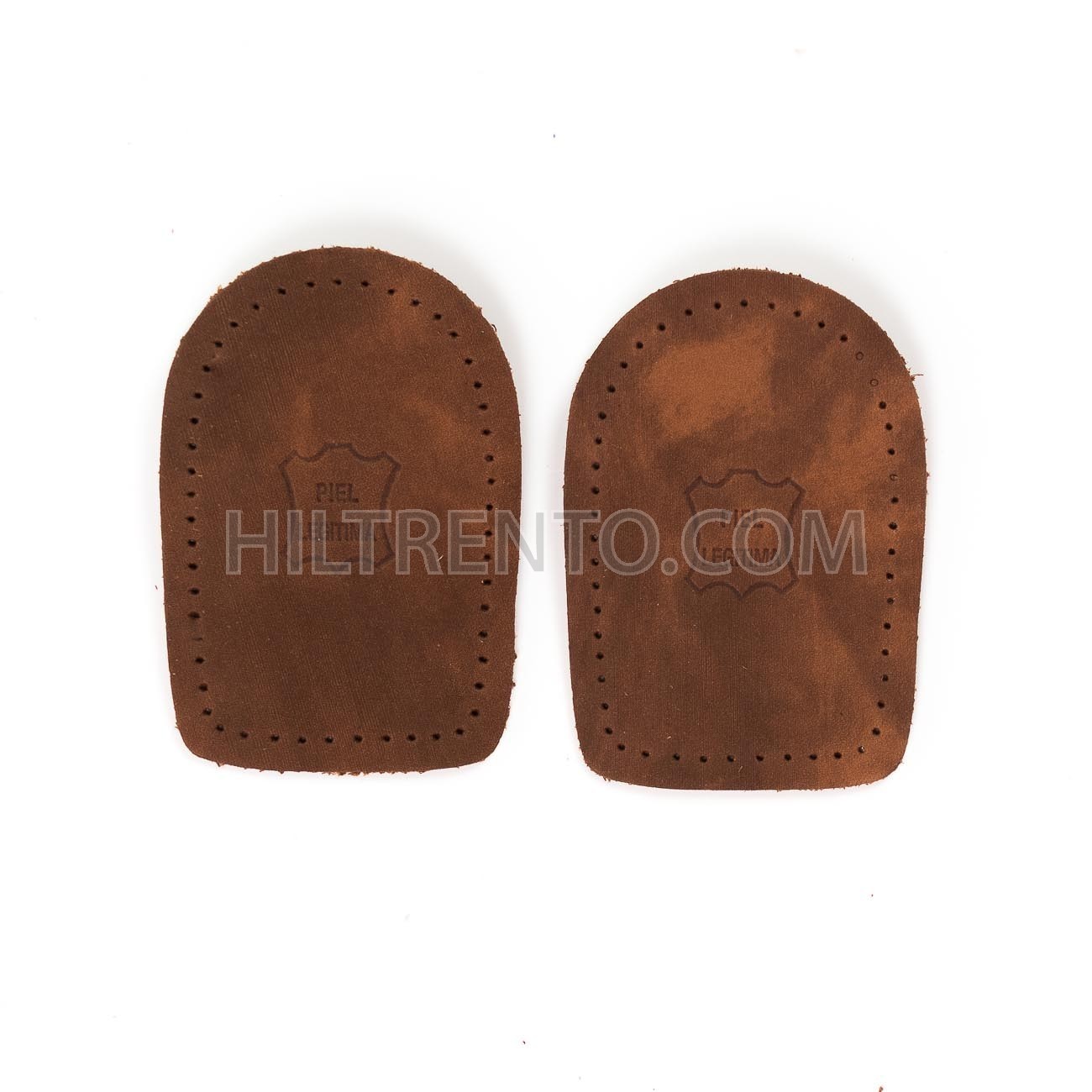 Alzas de piel de talla única con soporte ergonómico que se adapta cómodamente a la forma del talón amortiguando golpes al caminar. Incluyen cinta adhesiva para fijar al zapato.