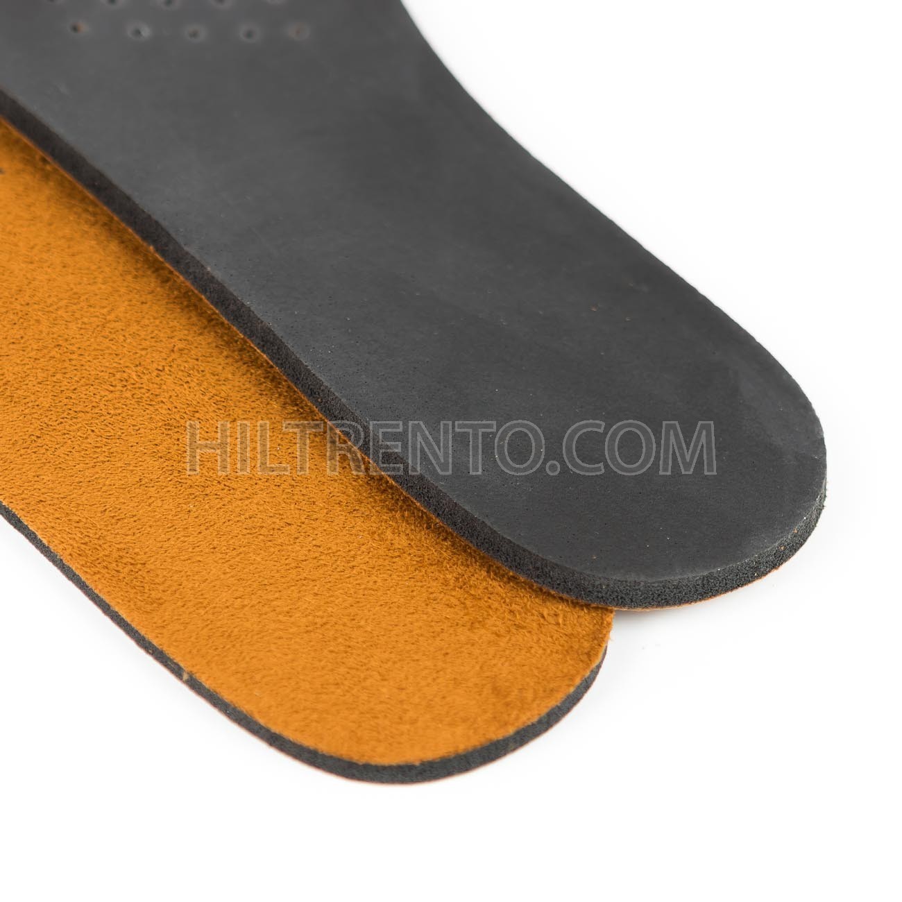 Plantilla completa de piel y espuma viscoelástica con alta capacidad de absorción del agua que aleja la humedad del pie ayudando a mantener la piel seca