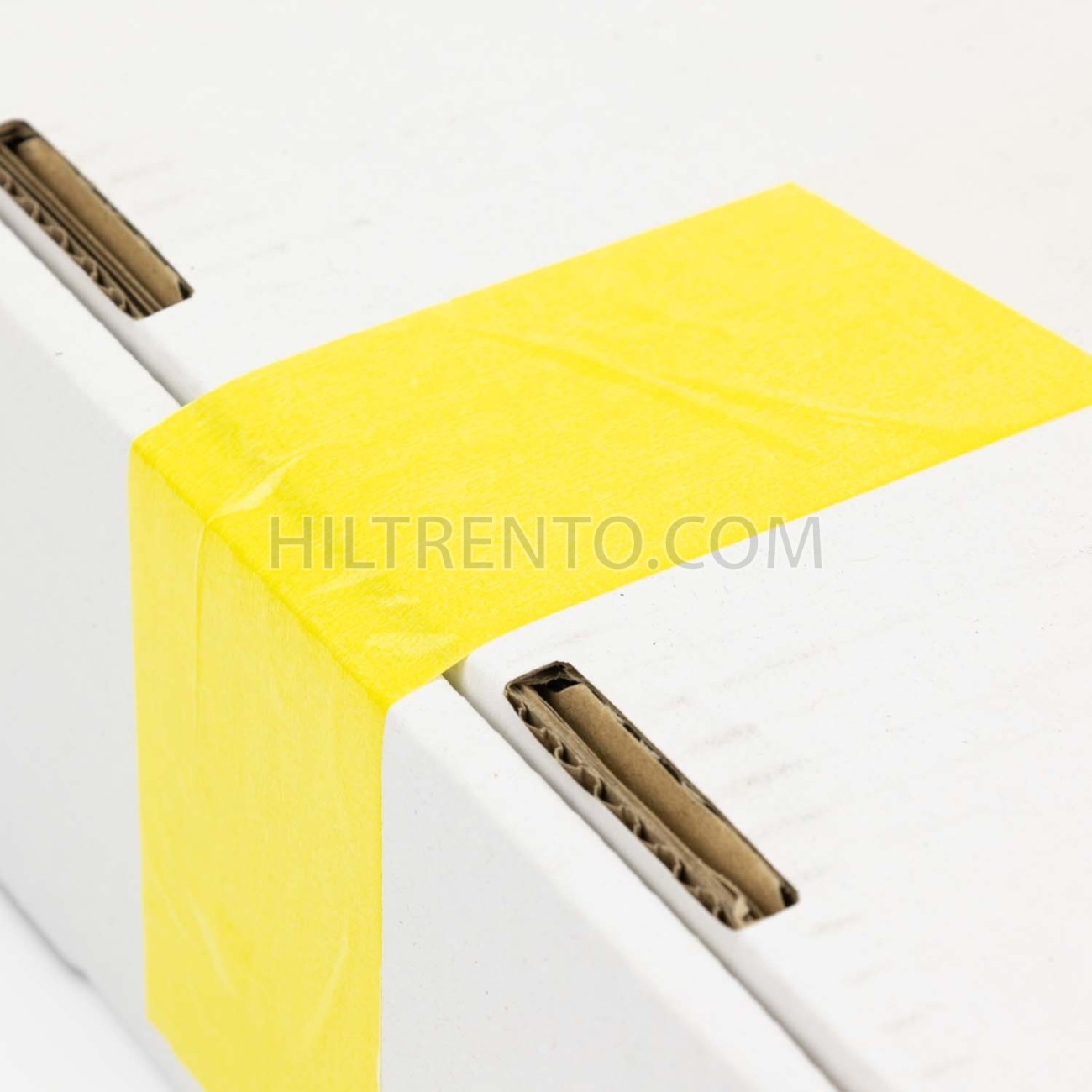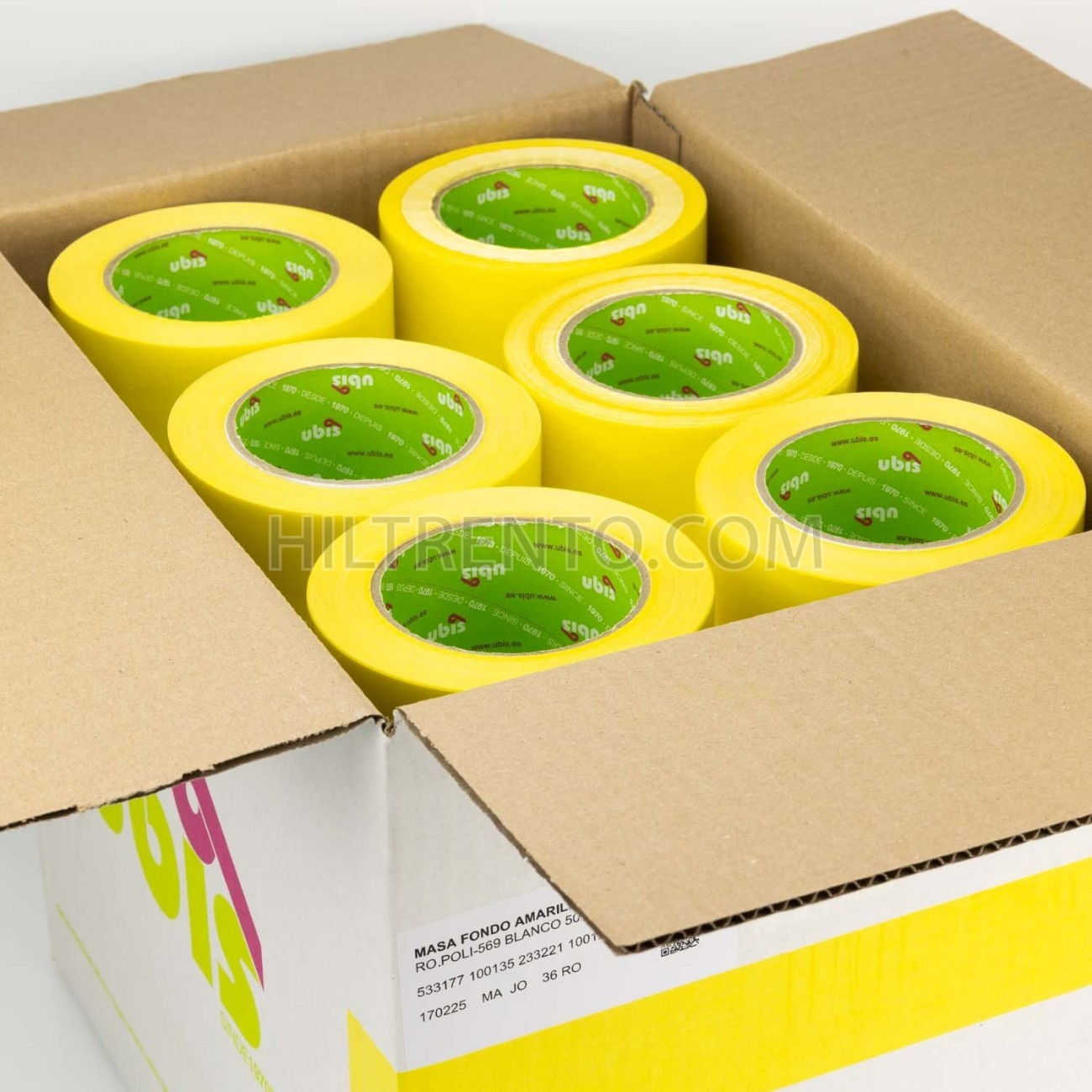 Cinta adhesiva amarilla de polipropileno, para embalar y cerrar cajas, marcaje de mercancías, logística, etc. Se puede usar manualmente o con máquinas precintadoras. Muy resistente a condiciones de almacenaje desfavorables, calor y humedad.