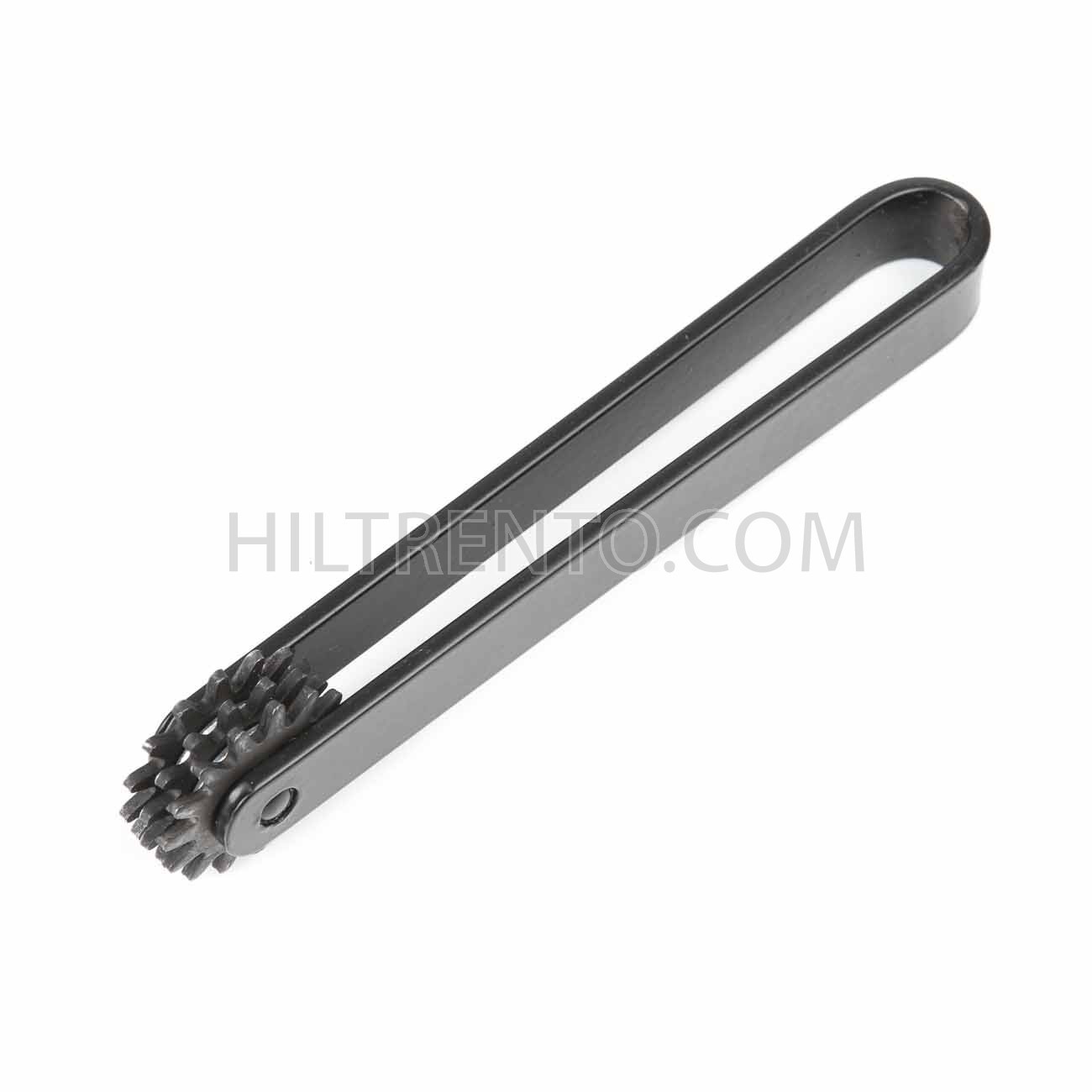 Reavivapiedras con rueda dentada en la punta y mango metálico. Se utiliza para las máquinas de rebajar en la industria del calzado, cuero y marroquinería.