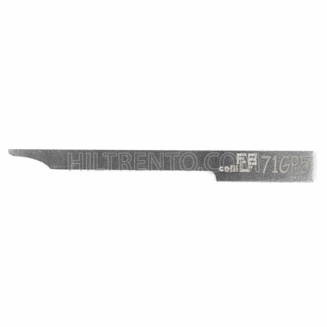 Cuchilla para máquina de refinar modelo GP5. Esta cuchilla se coloca en la máquina para recortar el sobrante de piel que queda en los bordes del zapato. La máquina GP5 utiliza dos cuchillas, la cuchilla GP5 (71GP5) y la contra cuchilla 93