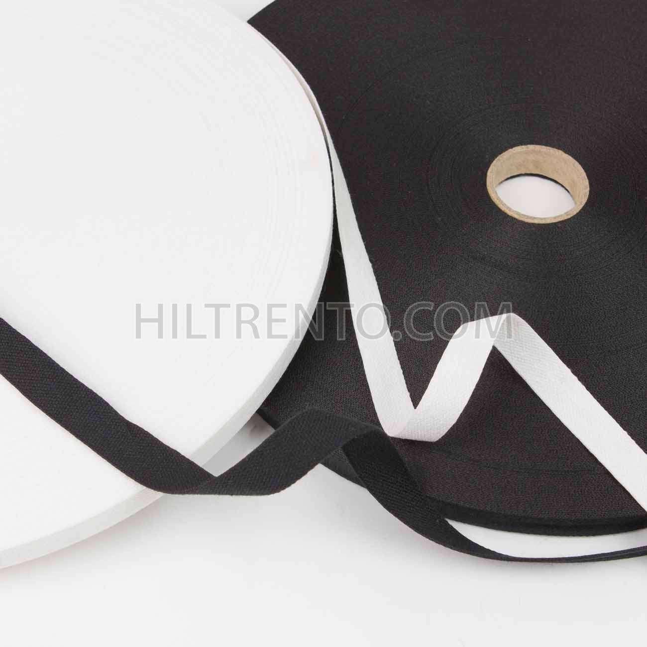 Cinta o ribete de algodón 100%, para ribetear y mejorar el acabado de los bordes en multitud de productos, por ejemplo, en zapatos o zapatillas, alpargatas, cierre de bolsas, etc. Se coloca alrededor del canto para darle un acabado más suave y elegante. También se utiliza en la fabricación de artículos textiles, camisas, prendas deportivas, artículos de piel, bolsas, mochilas, para hacer lazos y adornos, etc.