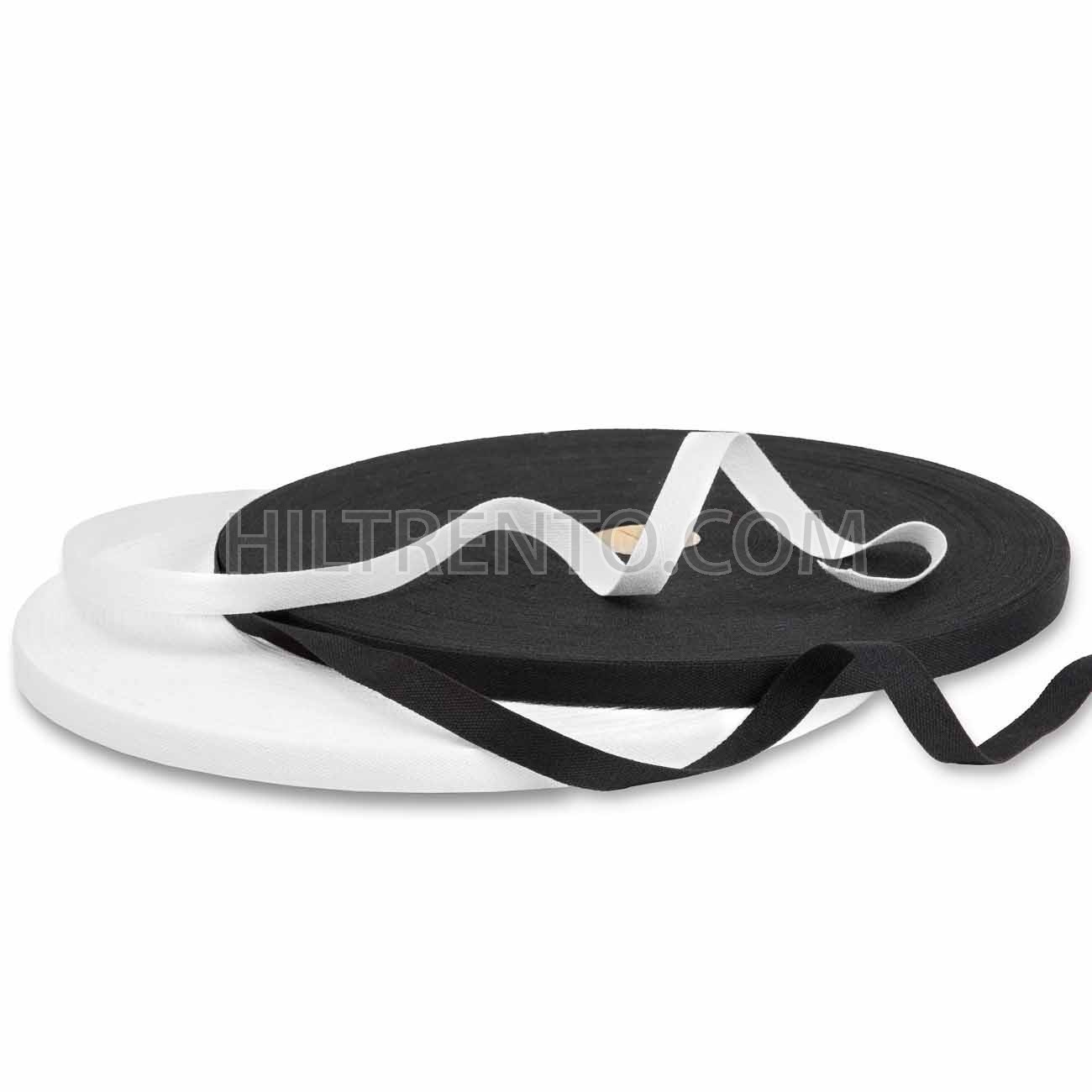 Cinta o ribete de algodón 100%, para ribetear y mejorar el acabado de los bordes en multitud de productos, por ejemplo, en zapatos o zapatillas, alpargatas, cierre de bolsas, etc. Se coloca alrededor del canto para darle un acabado más suave y elegante. También se utiliza en la fabricación de artículos textiles, camisas, prendas deportivas, artículos de piel, bolsas, mochilas, para hacer lazos y adornos, etc.