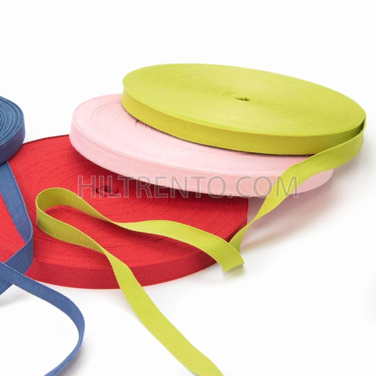 Cinta o ribete de algodón 100%, para ribetear y coser en los bordes en multitud de productos, por ejemplo, en zapatos o zapatillas, alpargatas, cierre de bolsas, etc. También se utiliza en la fabricación de artículos textiles, camisas, prendas deportivas, artículos de piel, bolsas, mochilas, para hacer lazos y adornos, etc.