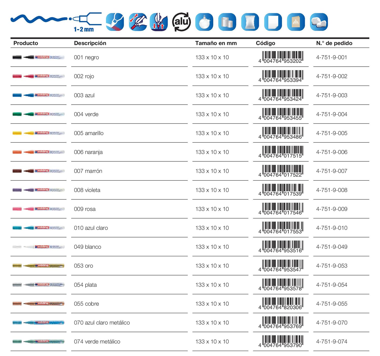 Para escribir permanentemente en materiales lisos, oscuros y transparentes tales como metal, vidrio, cristal, plástico, cerámica, etc.