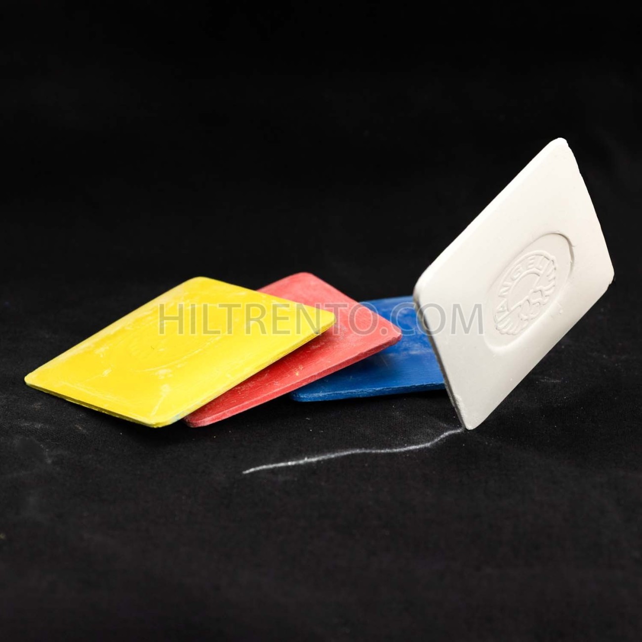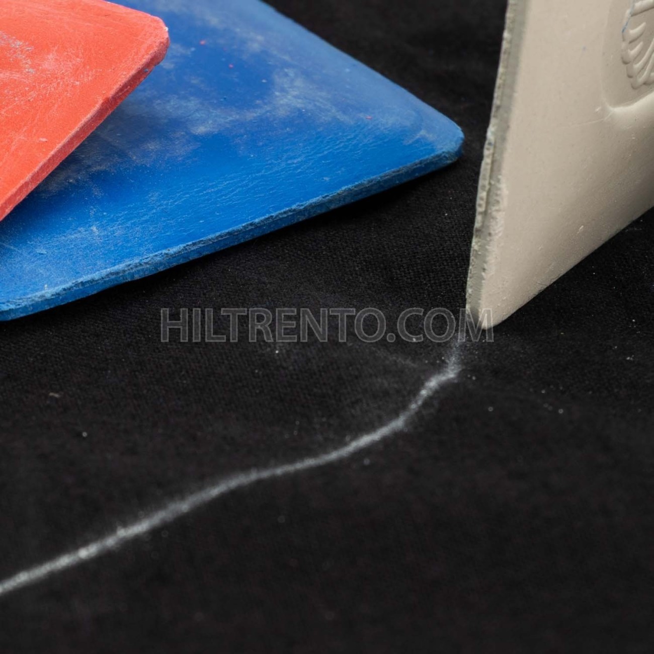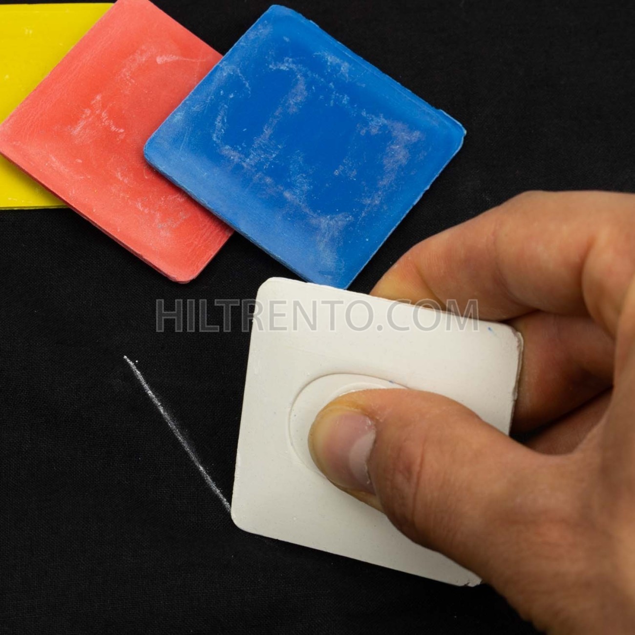 Jaboncillo tipo tiza con forma cuadrada y cantos afilados para marcar tejidos y telas en labores de costura, corte y patronaje. Disponible en varios colores para una mejor visibilidad según el color del tejido. Se elimina fácilmente frotando con un cepillo.