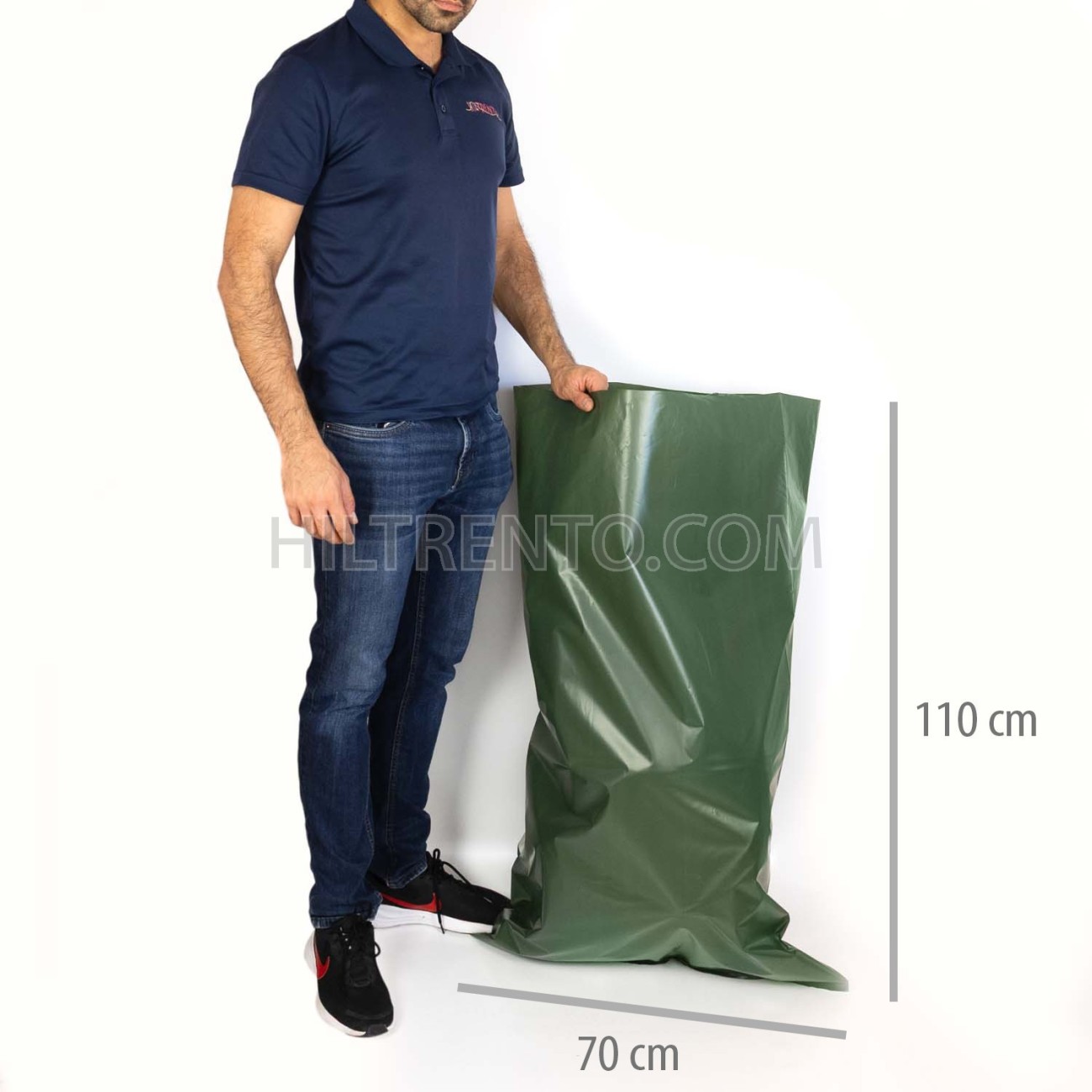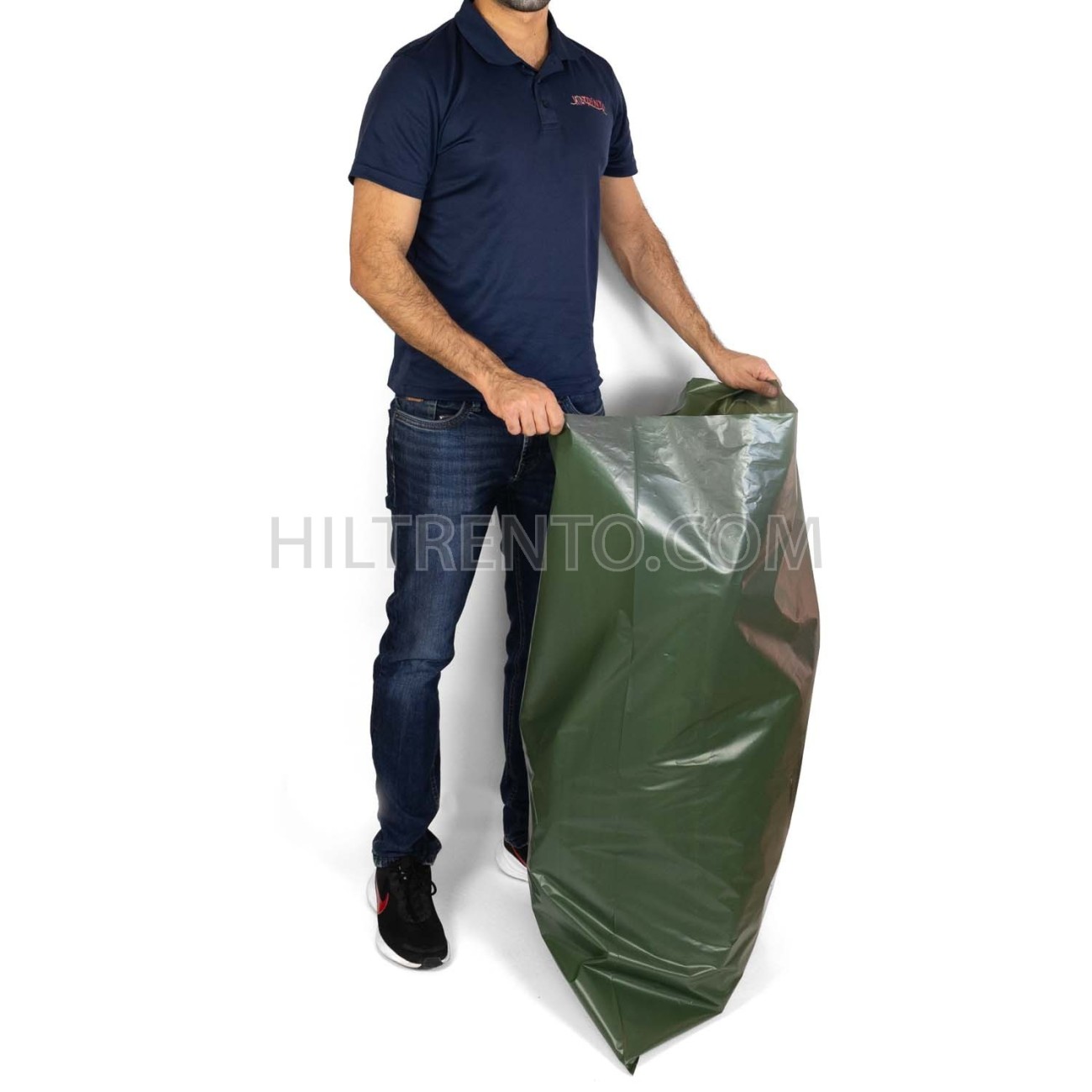 Saco o bolsa de plástico color verde Otan o verde militar, fabricado 100% en plástico reciclado. Tamaño grande que permite gran capacidad de almacenaje. Es opaco y no permite ver el contenido. Se usa principalmente para el transporte de animales por cazadores en jornadas cinegéticas y caza mayor. Son 100% impermeables evitando todo tipo de derrames, ofrecen una solución higiénica y resistente. Material robusto que soporta perfectamente el peso, color verde militar que se integra muy bien con el paisaje.