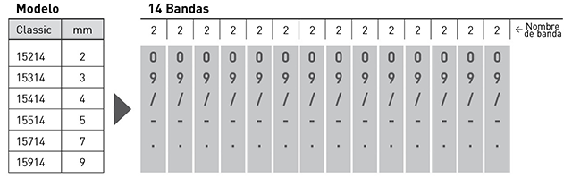 Sello numerador de cuerpo metálico, con bandas de goma resistentes al uso continuado. Incluye números del 0 al 9 en cada posición y varios caracteres especiales por posición. ( Nº, $, %, €, punto, coma, guion, / , #, %, kg, etc.)