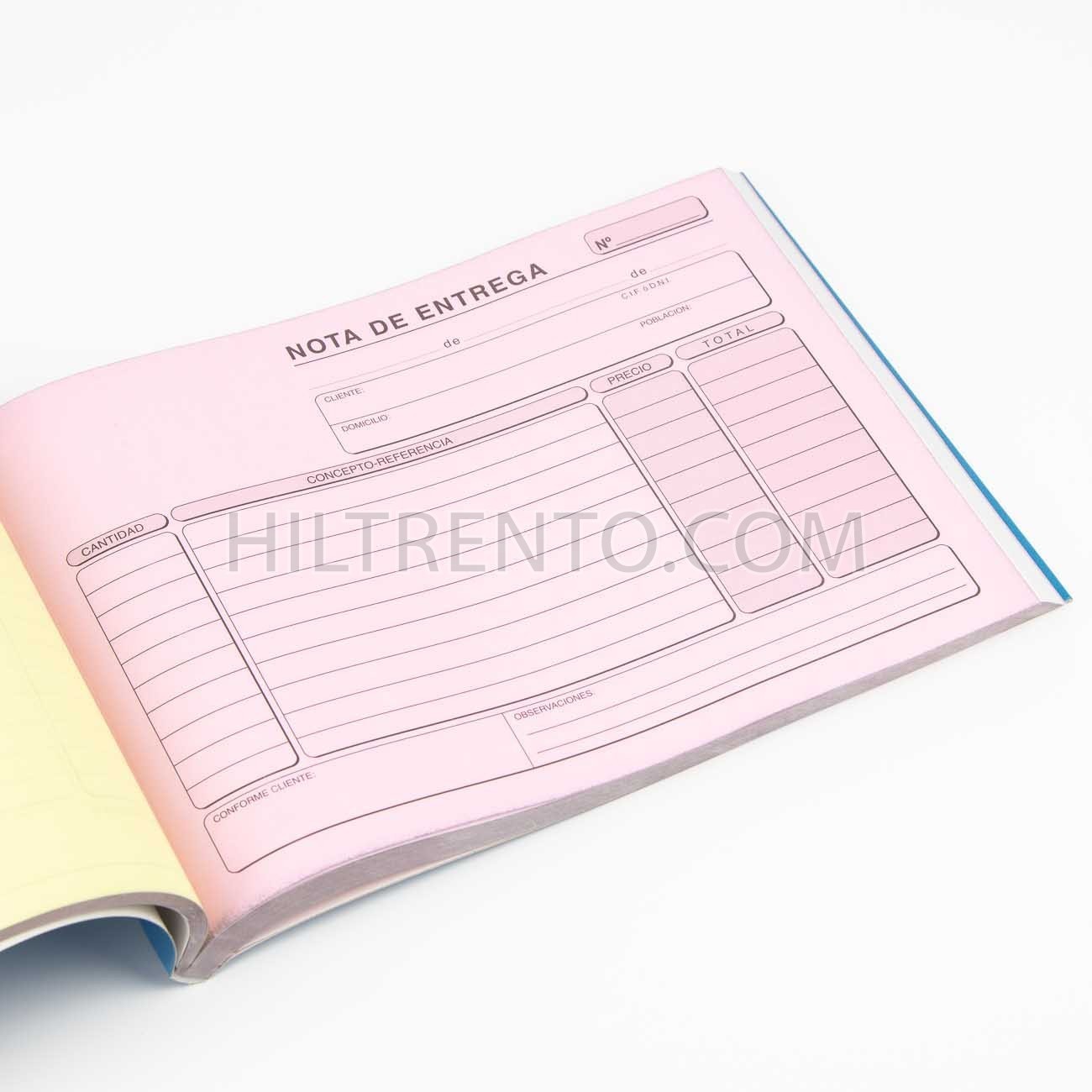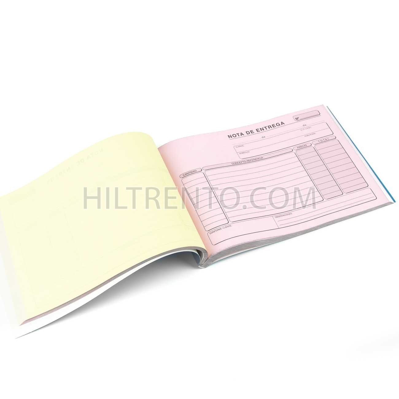 Talonario o libreta para hacer albaranes de entrega de mercancía. Incluye 3 hojas por albarán, auto copiantes. De color blanca, amarilla y rosa.