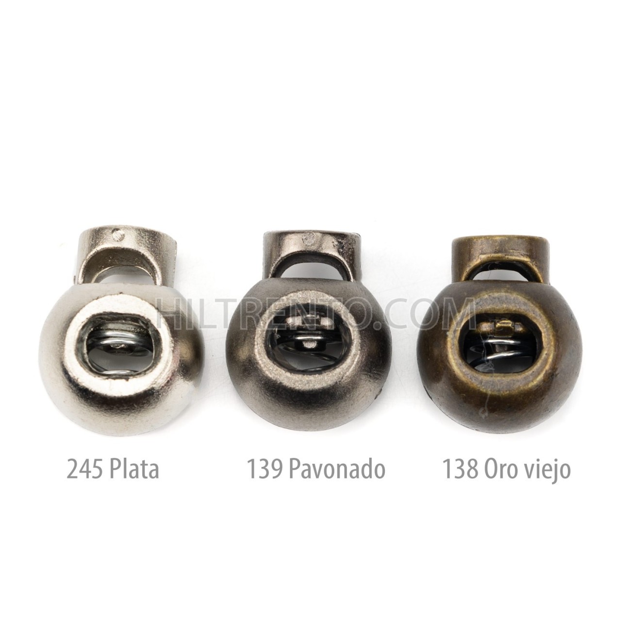 Topes tensores de cordón con muelle en su interior de colores metalizados. Se utilizan para ajustar cordones y cuerdas a la medida deseada. Su uso es muy sencillo, simplemente presiónalo para liberar el resorte, introduce el cordón y ajústalo a la medida deseada. Una vez sueltes el resorte, el cordón queda bloqueado