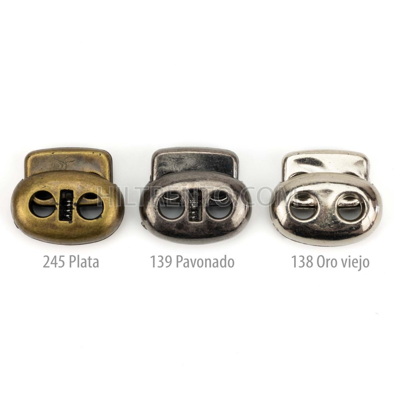 Tope tensor cordón plástico metalizado doble agujero 22 x 23 mm