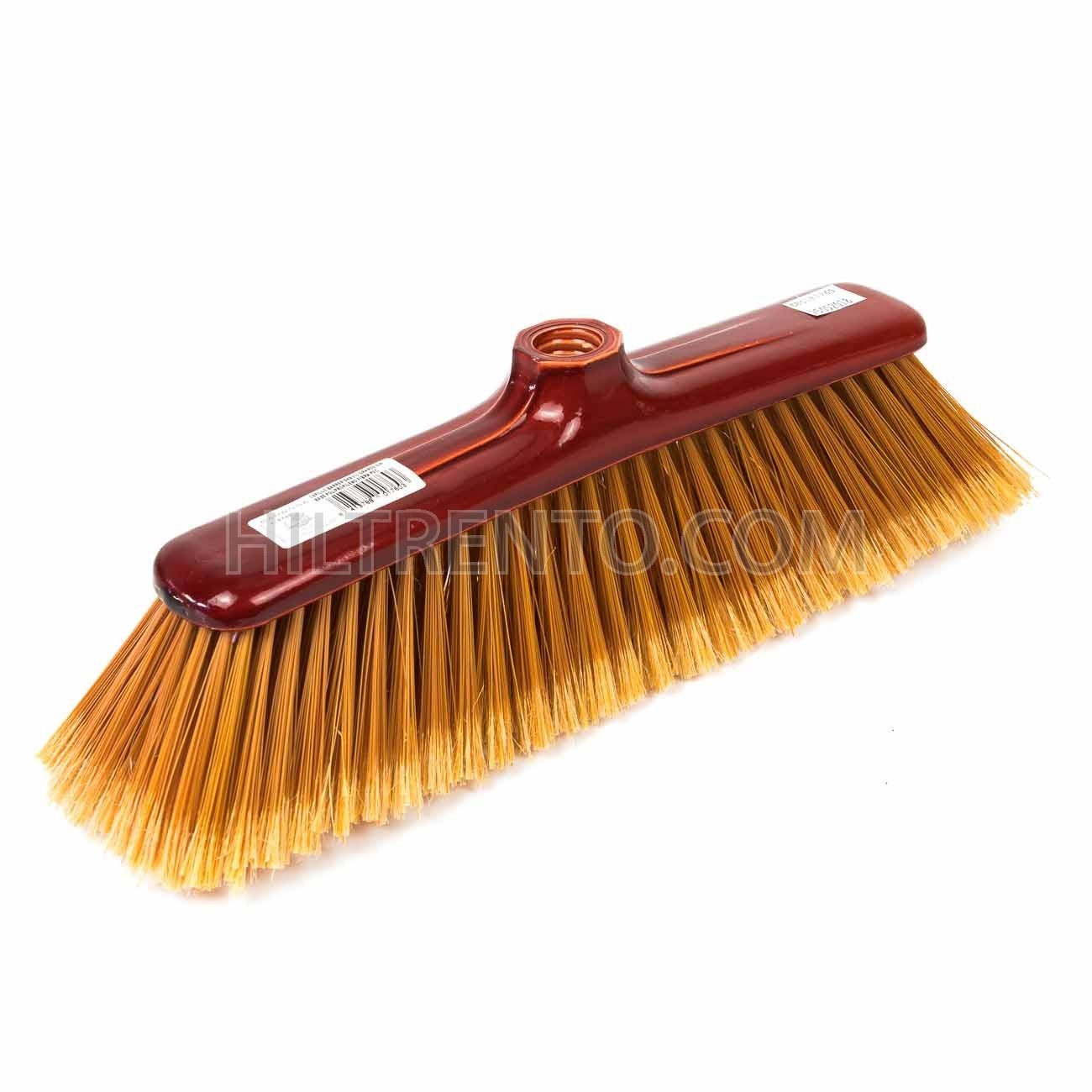 Cepillo de barrer para acoplar a palos de escoba estándar de Ø 24 mm. Color rojo metalizado con cerdas acabadas en pelo fino para mejorar la limpieza. Fabricado a base de fibra de pvc altamente resistente. Rosca compatible con la gran mayoría de palos del mercado.